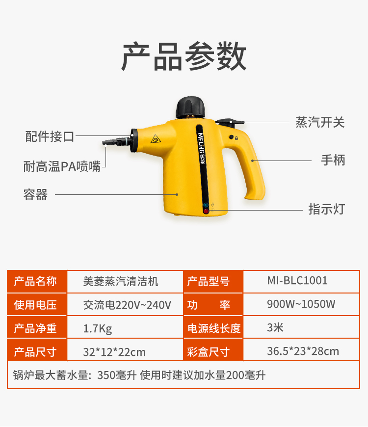 中国美菱蒸汽清洁机MI-BLC1001 350毫升水箱