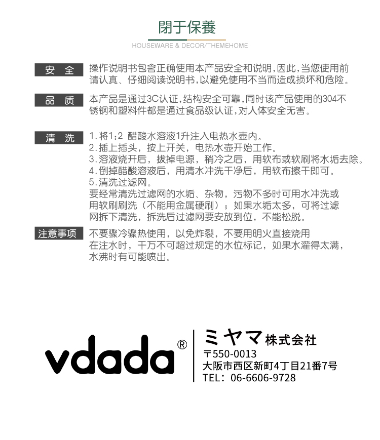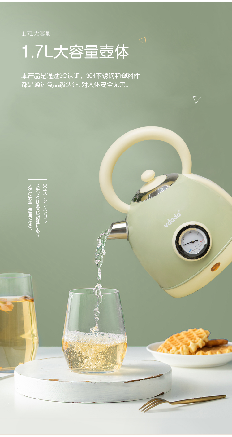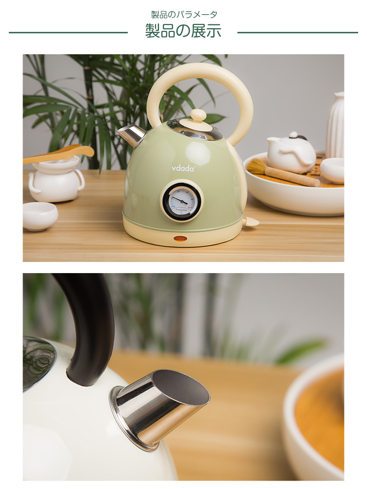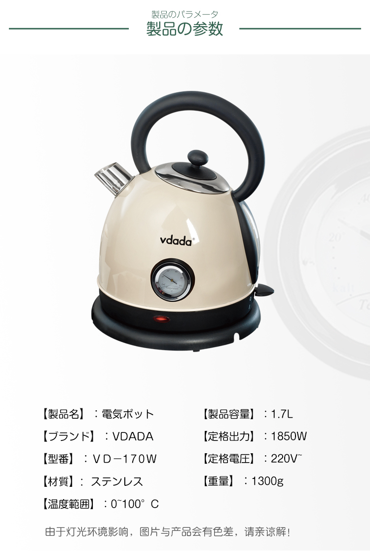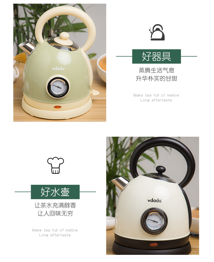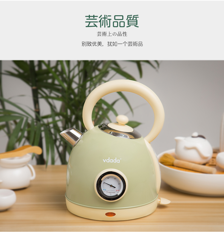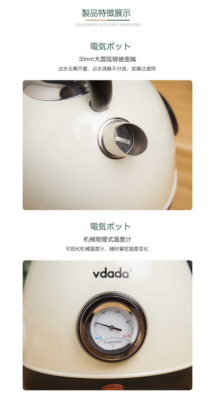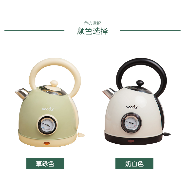 日本vdada电热烧水壶复古怀旧经典防干烧煮水开水壶 家用304不锈钢 奶白色