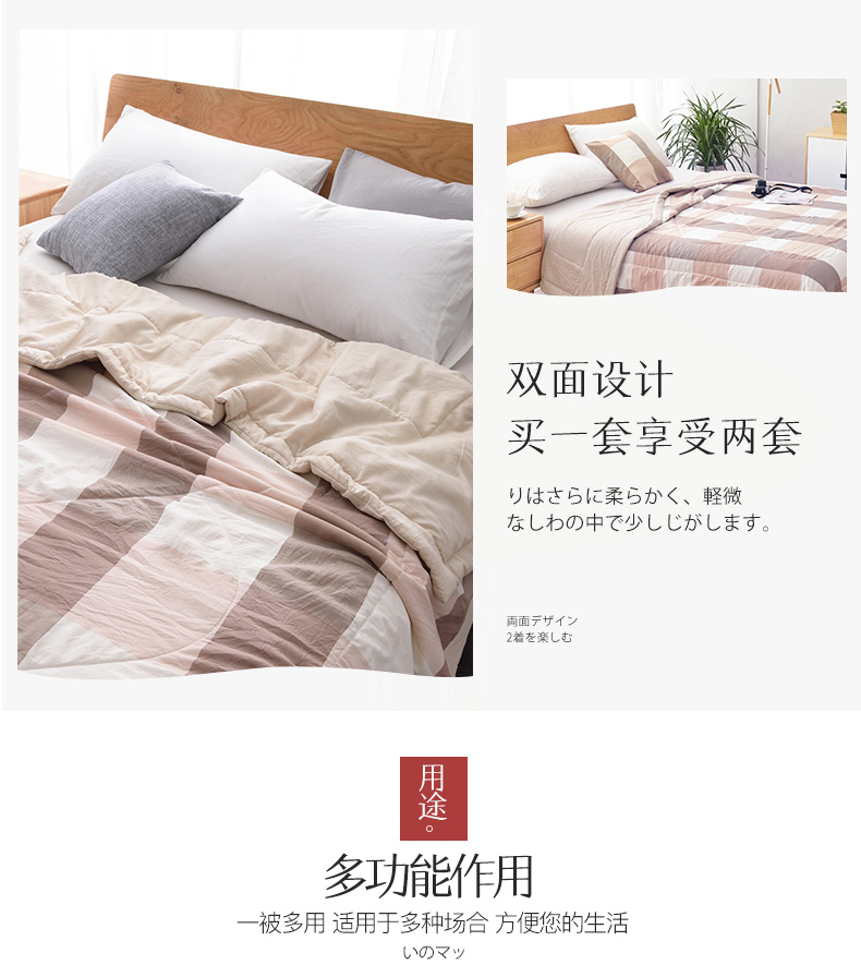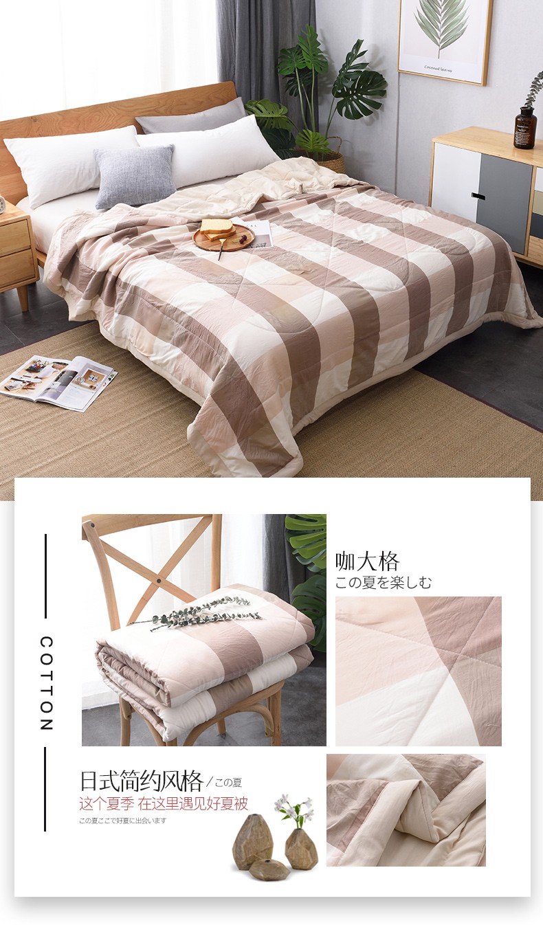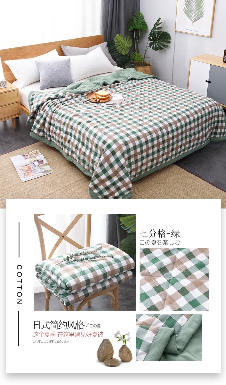 无印良品 水洗棉夏被 空调被WYLP-WYFXB 200x230cm 绿大格