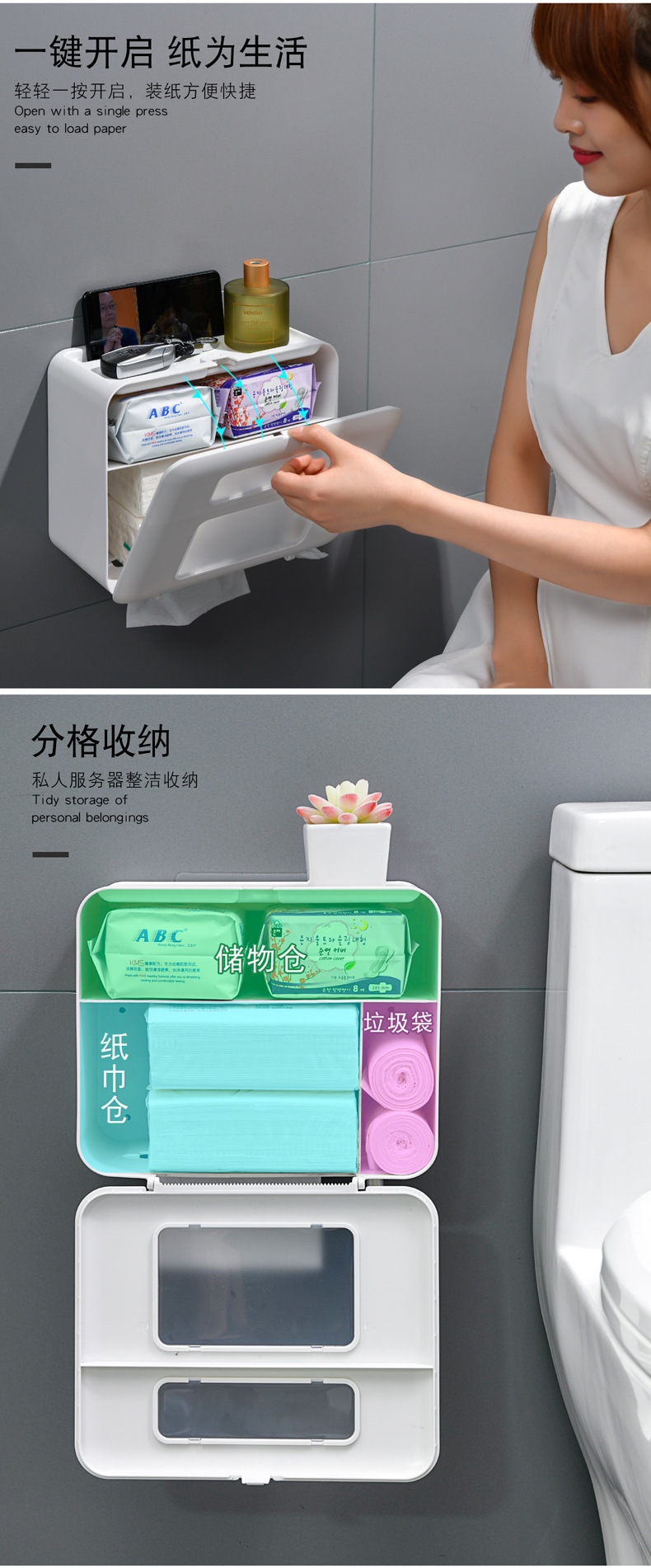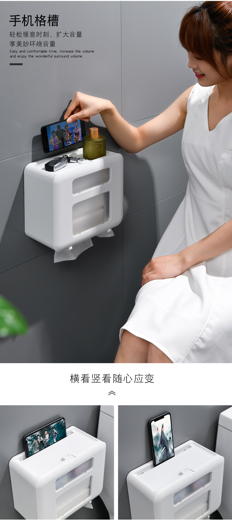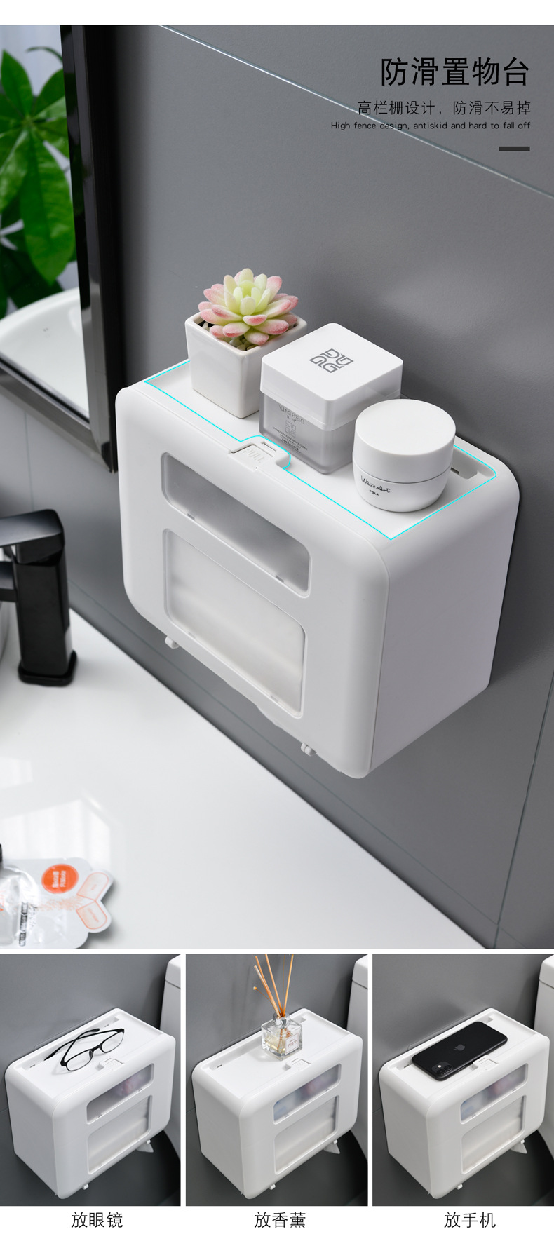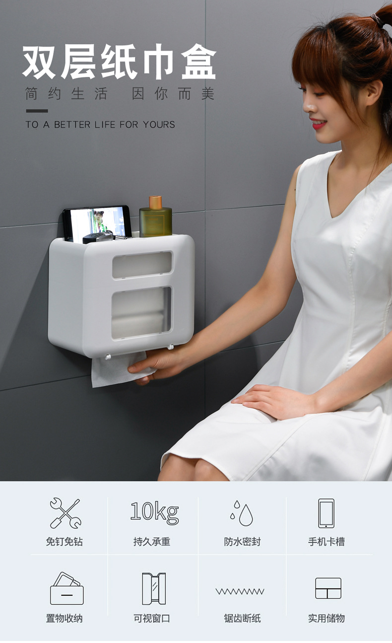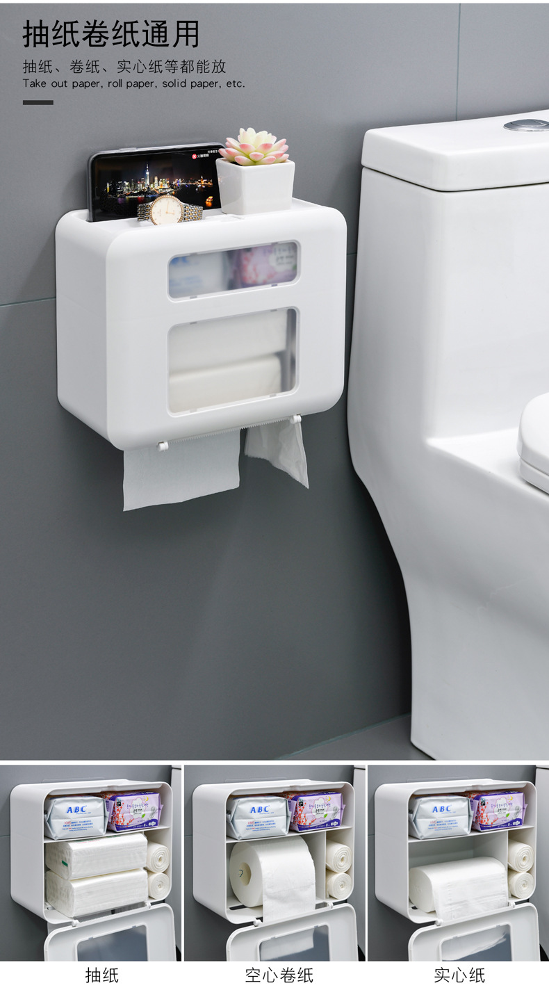 时光机日用品壁挂式盒厕所卫生纸置物架厕纸盒防水纸巾架 白色