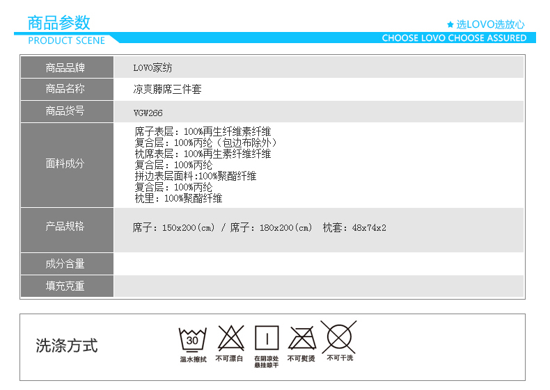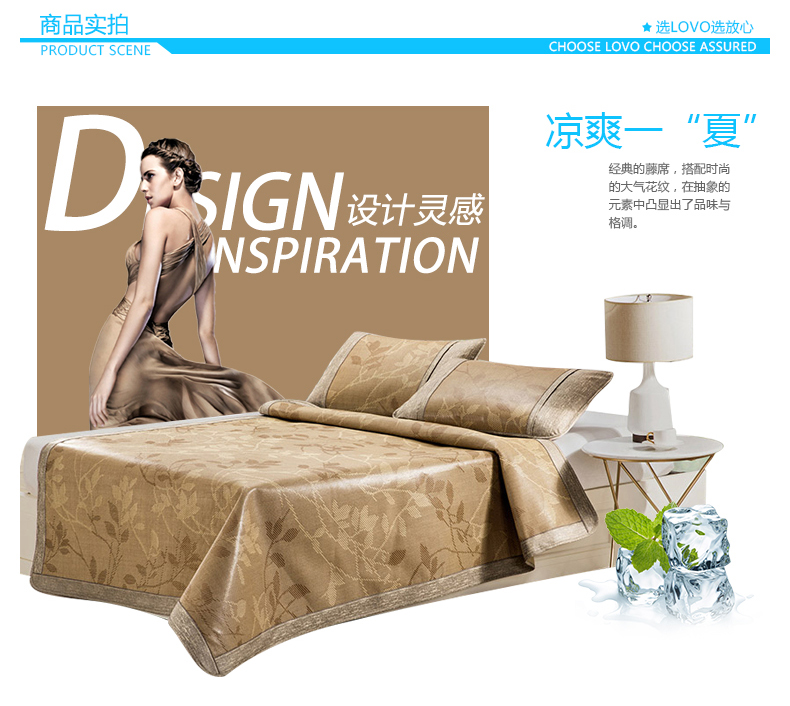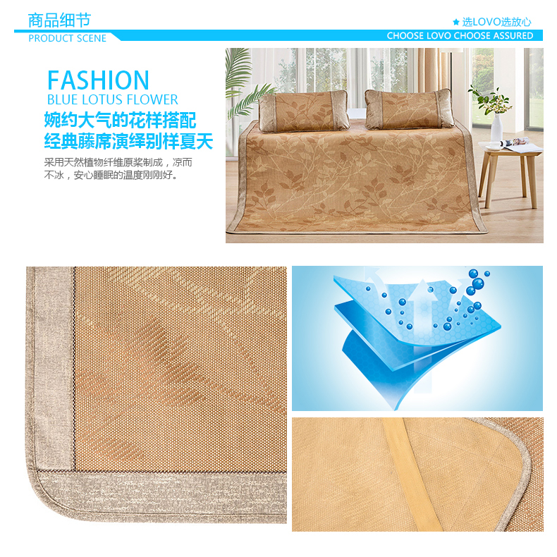 LOVO罗莱凉爽藤席三件套VGW266 席子:180x200cm枕套:48x74cmx2
