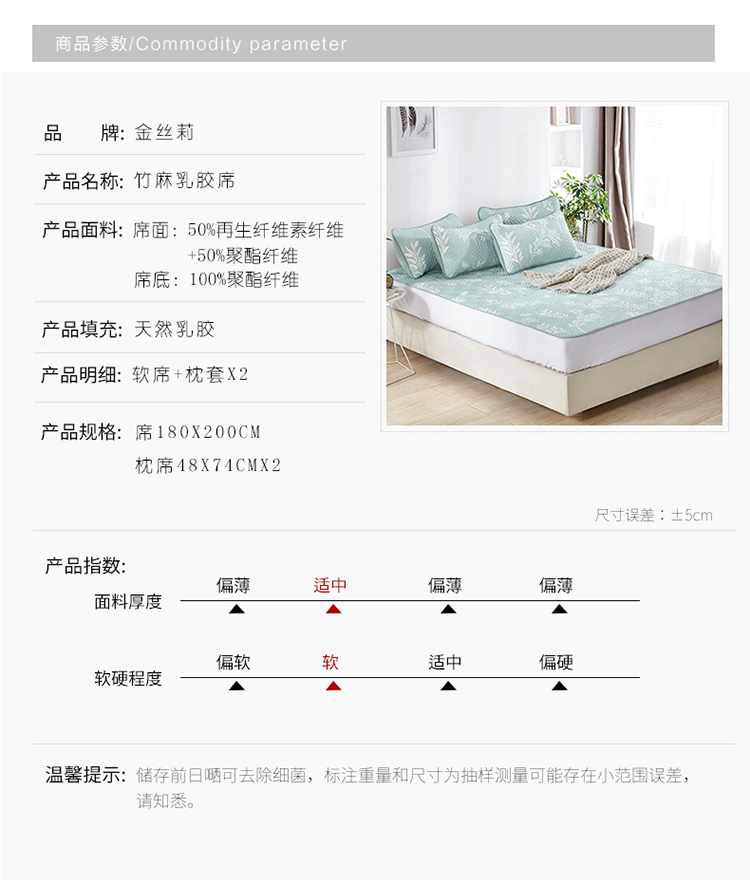 金丝莉竹麻乳胶席JX-1057 三件套席180×200cm枕席48×74cm×2