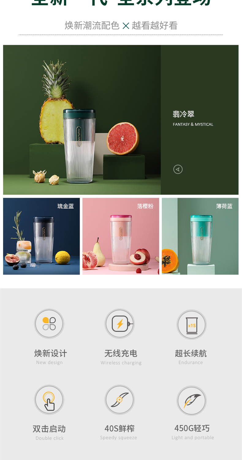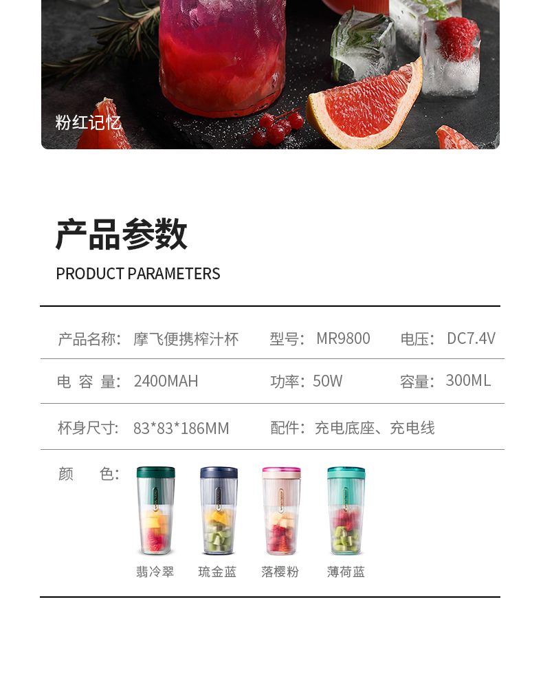 摩飞炫彩无线便携榨汁杯MR9800深蓝