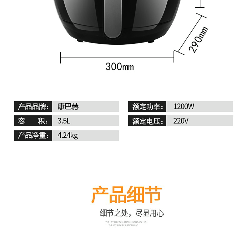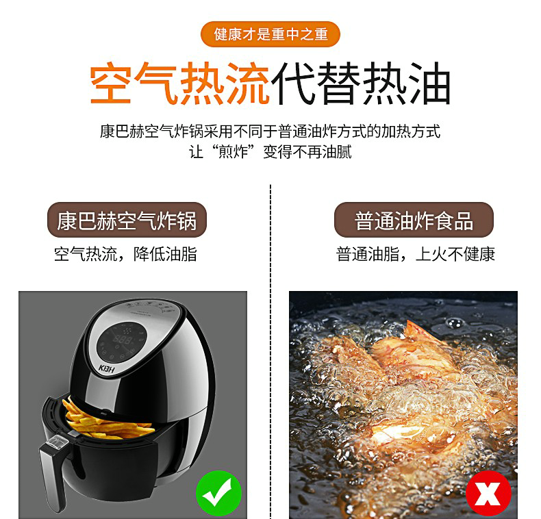 【授权商品】德国康巴赫空气炸锅 智能家用无油烟大容量烤箱薯条机 3.5L KZG3L