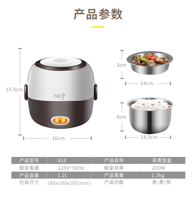 NERF拉尔弗蒸煮饭盒 电热饭盒MD-818