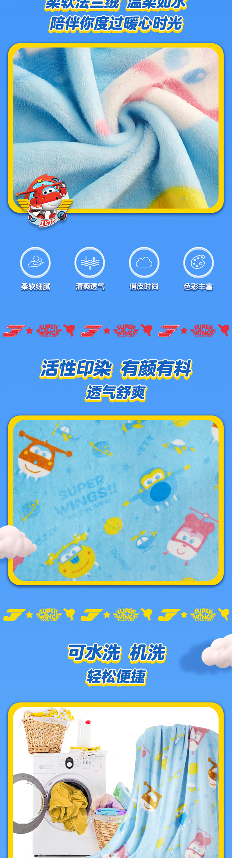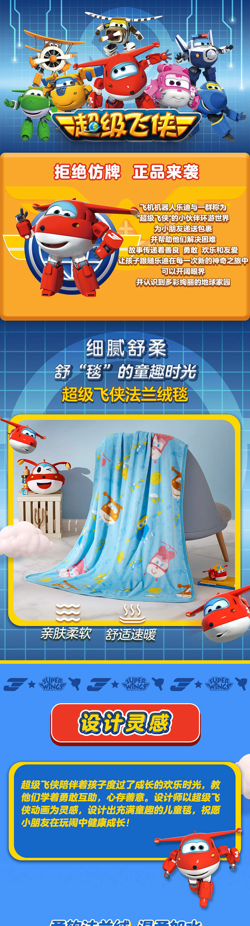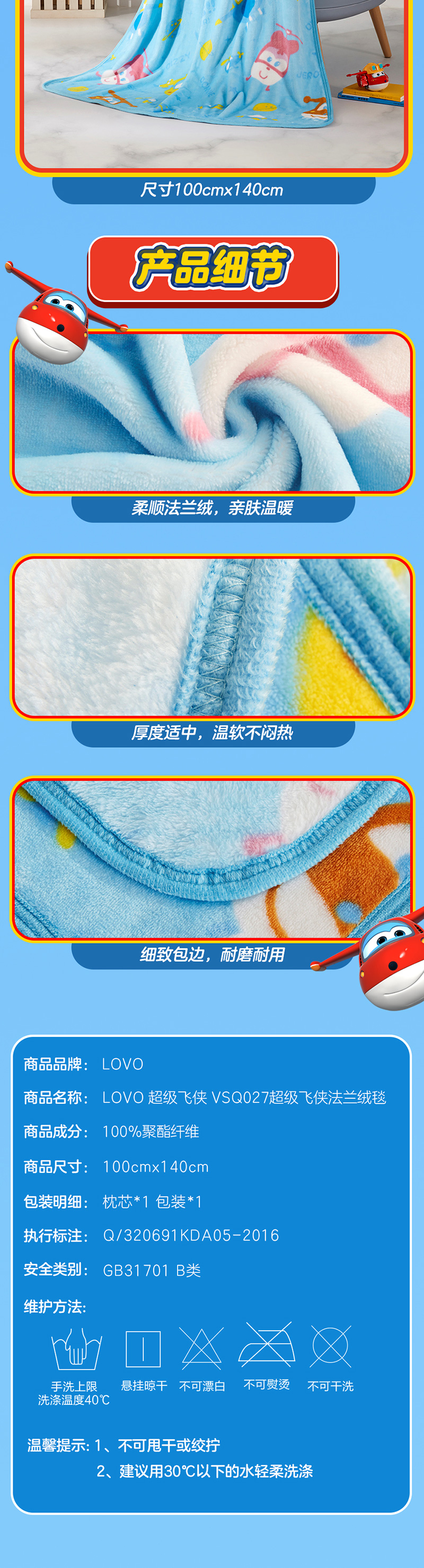 【授权商品】中国LOVO家纺(罗莱生活荣誉出品)超级飞侠法兰绒毯100*140cm