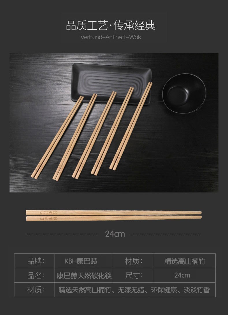 【授权商品】康巴赫天然楠竹筷子20双无漆无蜡整竹无竹节打磨防滑家用筷子 20双 THK001