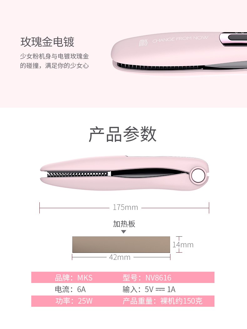 中国MKS(美克斯)迷你电夹板发直卷夹刘海卷发棒NV8616