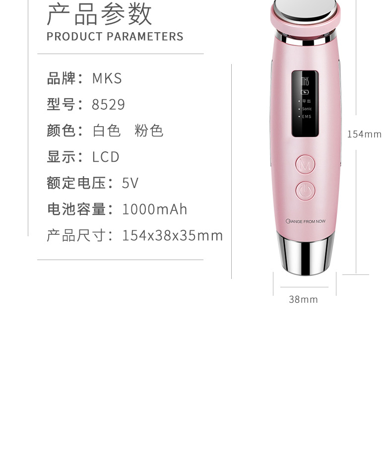 中国MKS(美克斯)李佳琦推荐超声波美容仪器脸部按摩仪NV8529白色