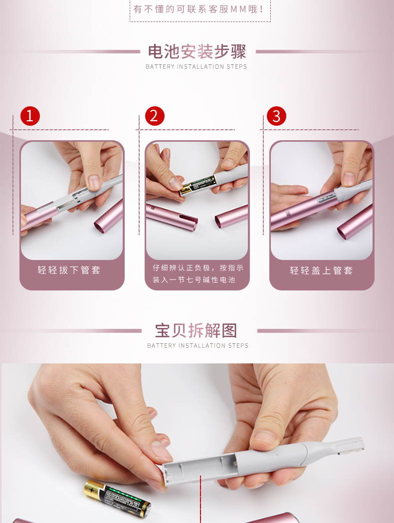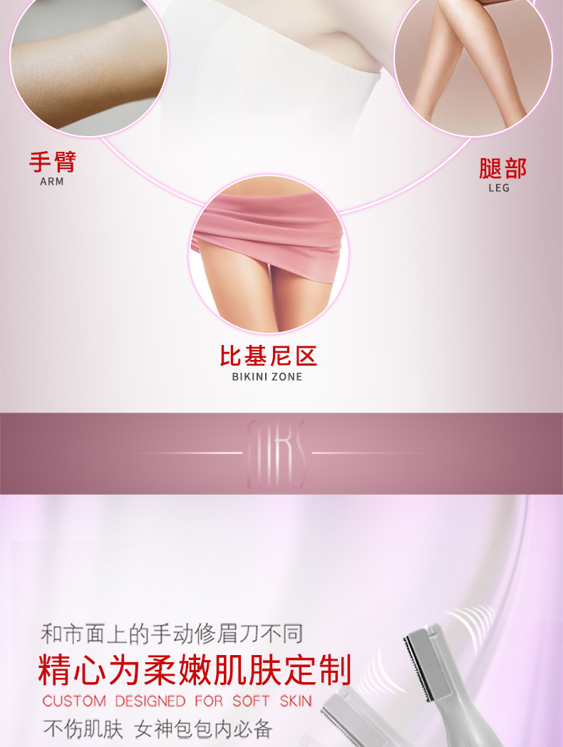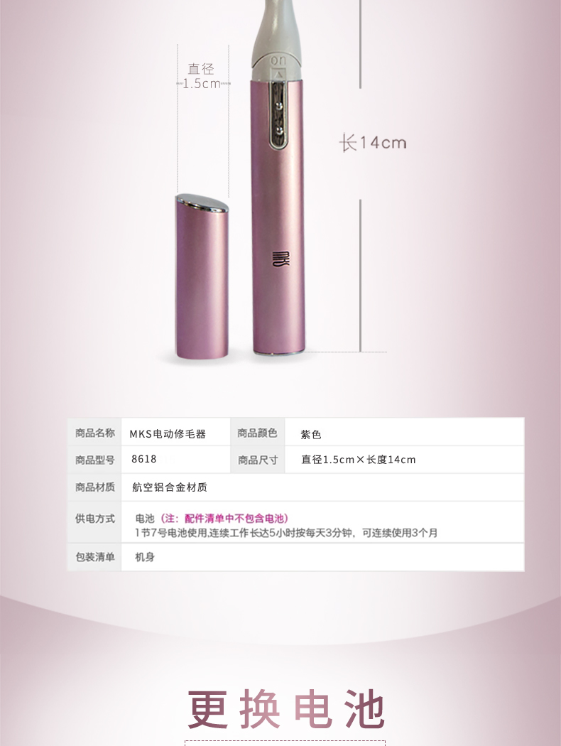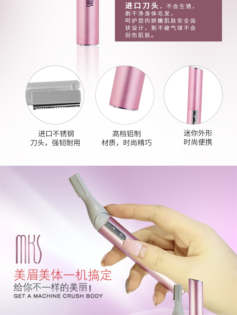 中国MKS(美克斯)电动修眉刀不伤肌肤刀头角度可调节NV8618