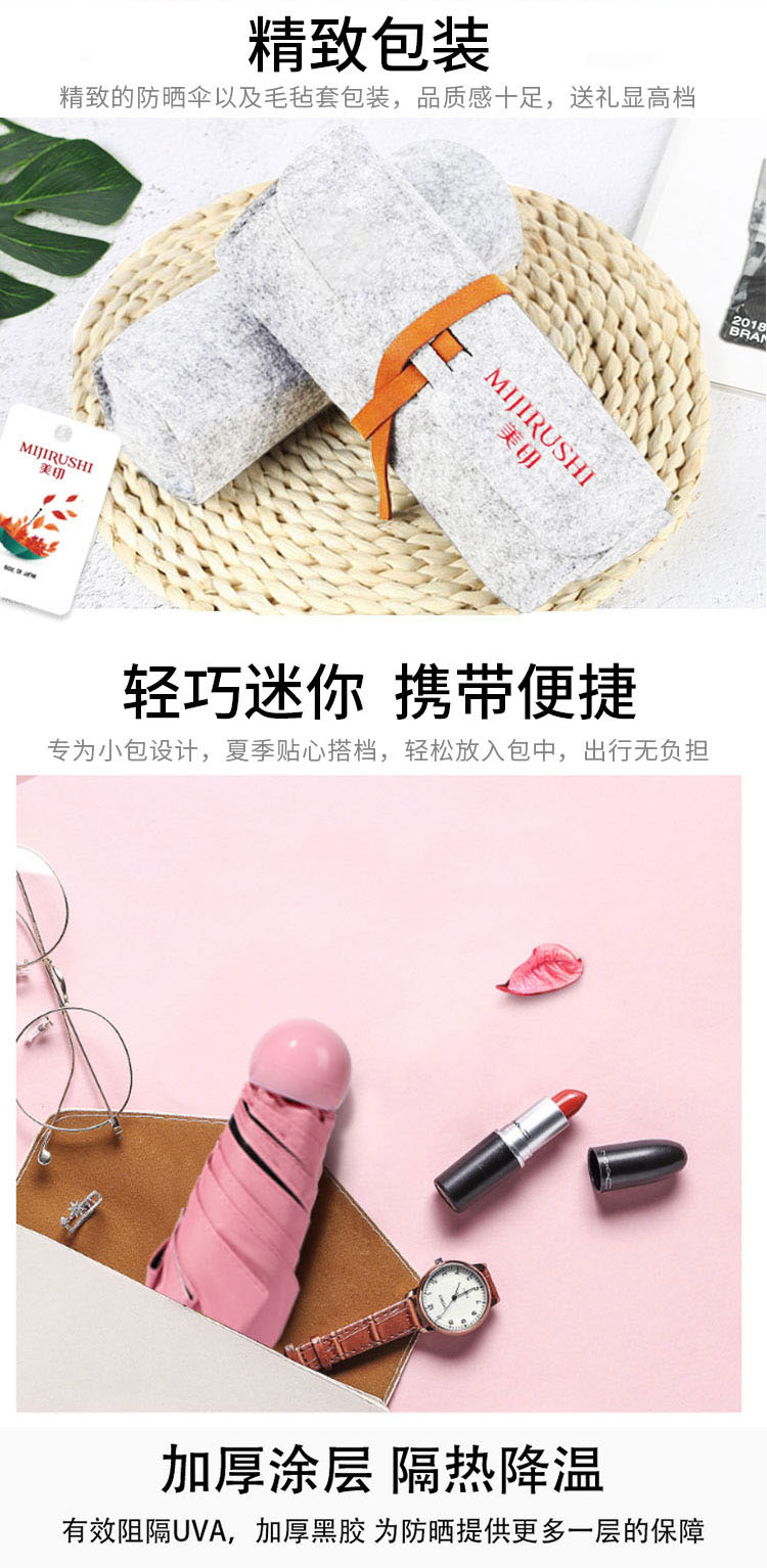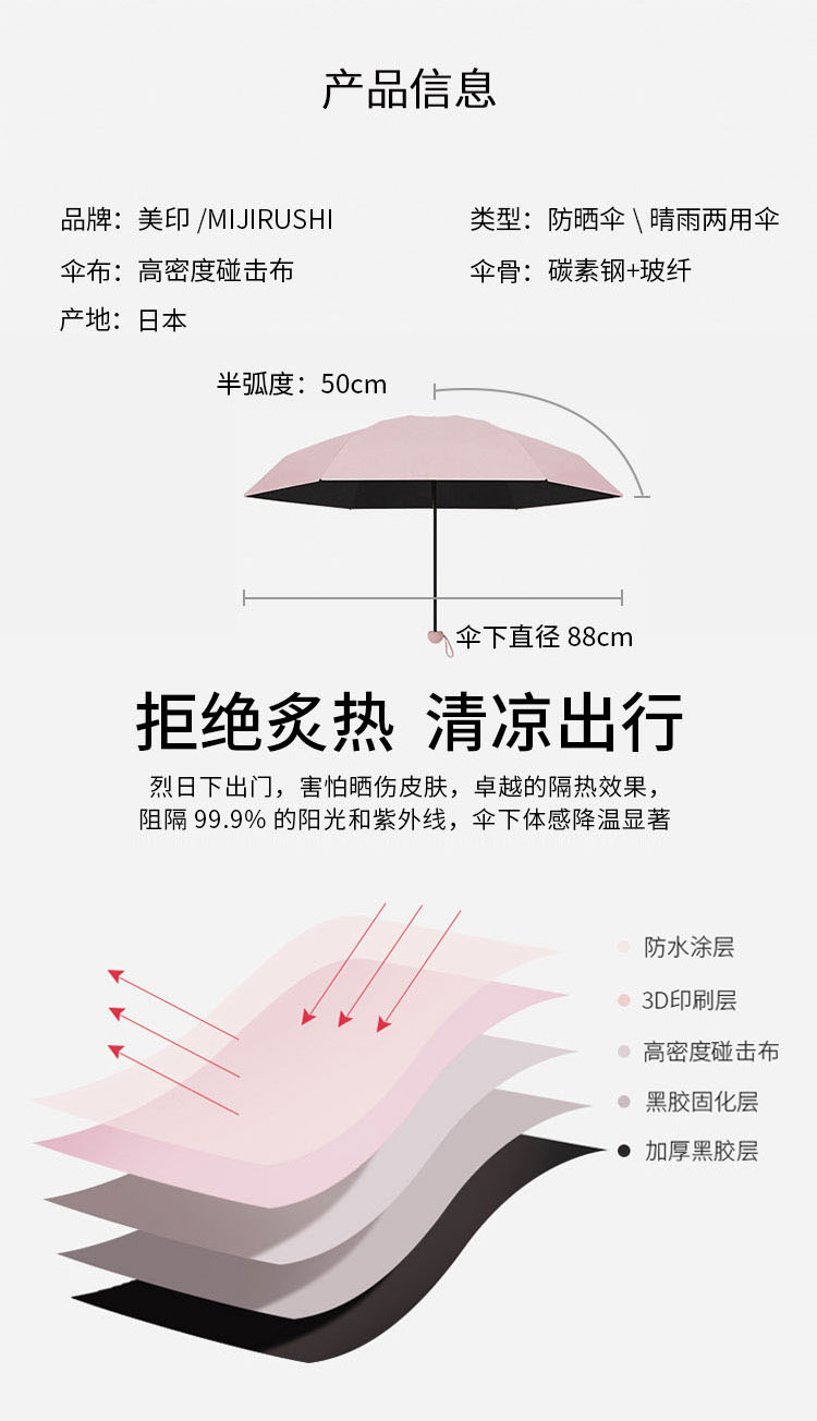 日本Mijirushi/美印 迷你超轻黑胶纯色晴雨两用防晒伞 可爱日系清新系列 静谧蓝pcm-104