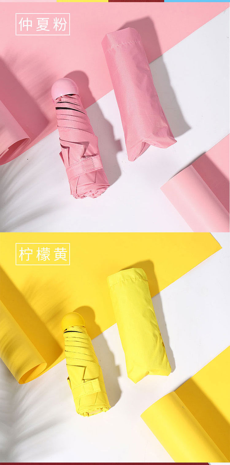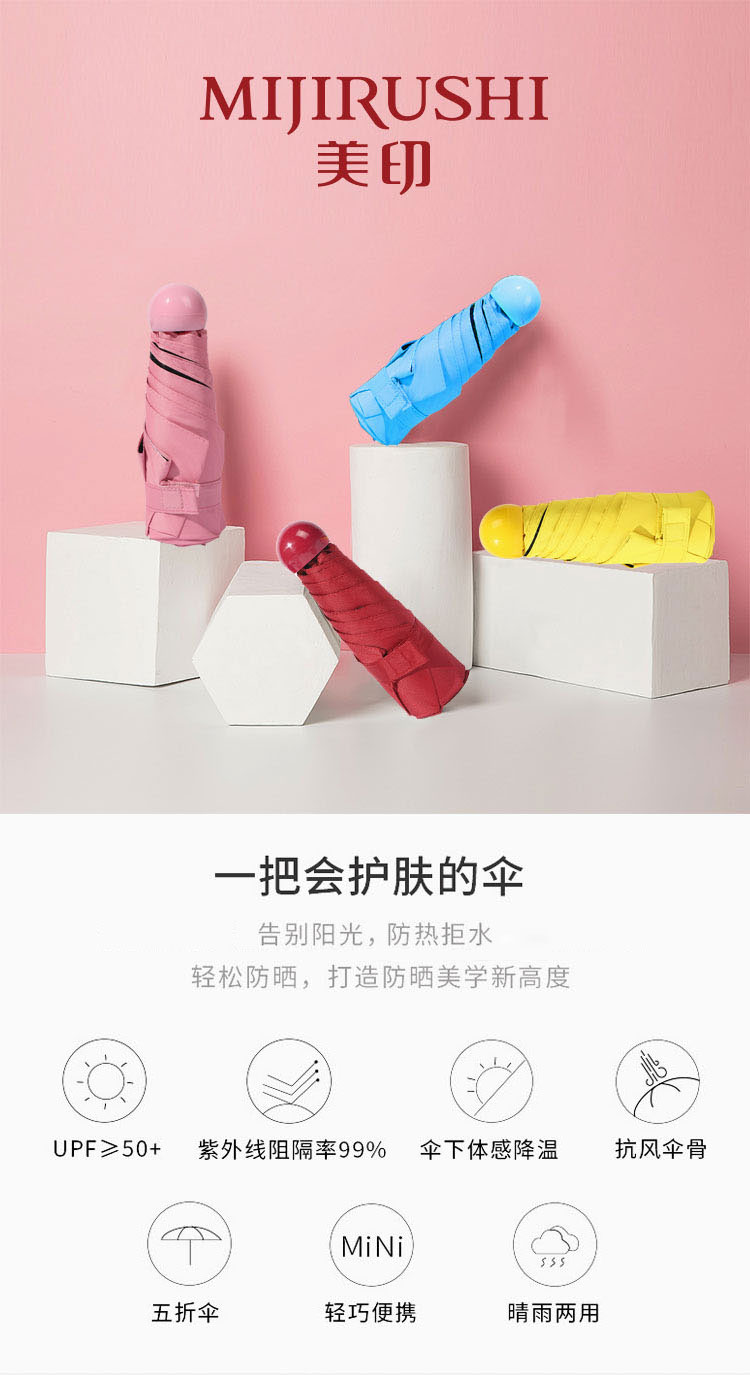 日本Mijirushi/美印 迷你超轻黑胶纯色晴雨两用防晒伞 可爱日系清新系列 仲夏粉pcm-102