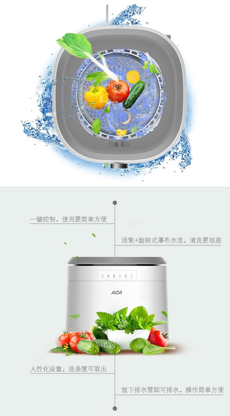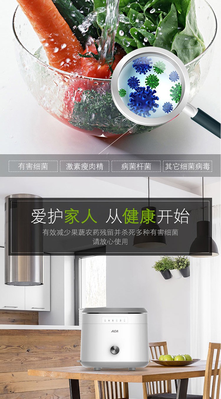 【授权商品】ACA/北美电器ALY-XD10智能食材清洗机9L果蔬净化机