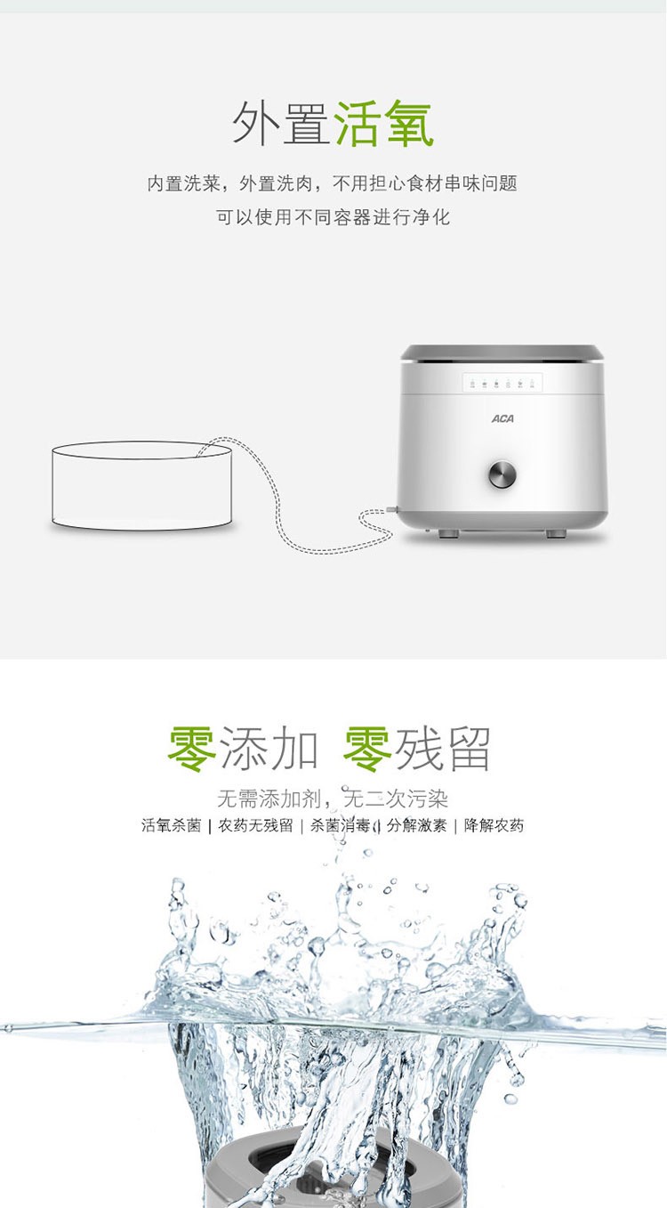 您所在的位置:首页 > 家用电器 >  厨房小电 >  果蔬解毒机 >  【授权商品】ACA/北美电器ALY-XD10智能食材清洗机9L果蔬净化机