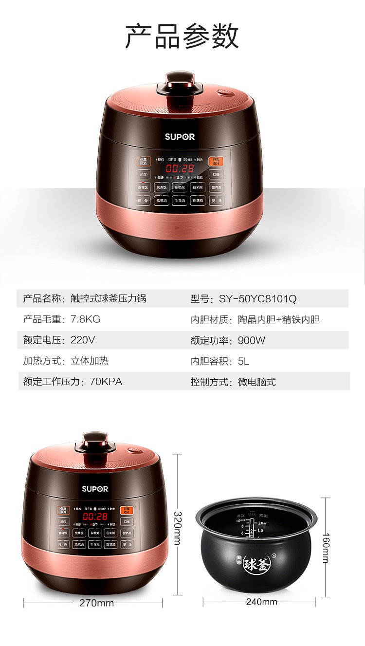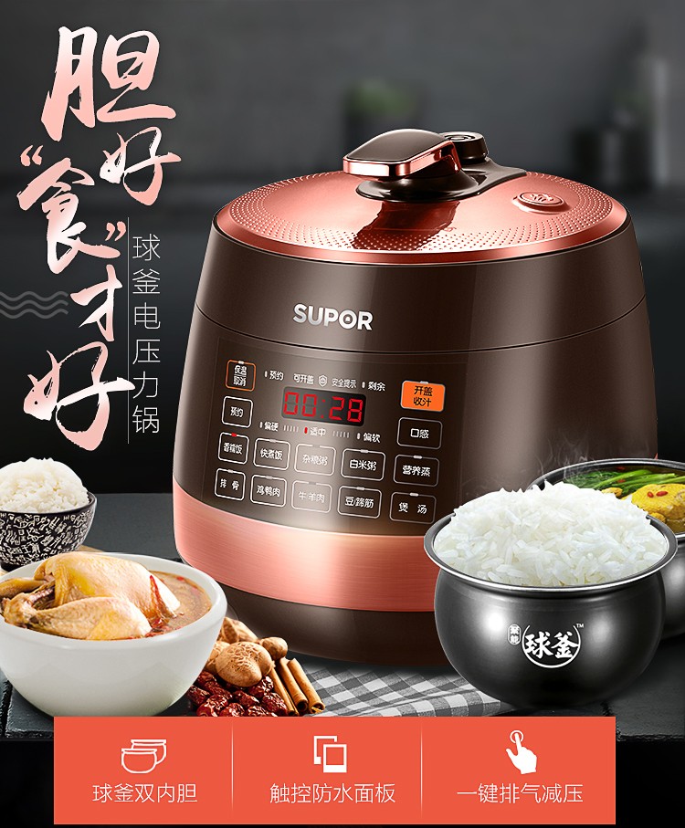 苏泊尔(SUPOR) 电压力锅5L球釜双胆饭煲电高压锅SY-50YC8201Q 玫瑰红色SY-50YC8201Q