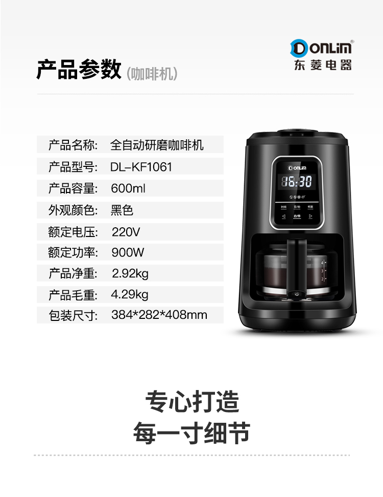 您所在的位置:首页 > 家用电器 >  厨房小电 >  咖啡机 >  【授权商品】东菱(Donlim) 咖啡机家用 全自动磨豆机 豆粉一体 办公室美式咖啡壶 DL-KF1061黑色
