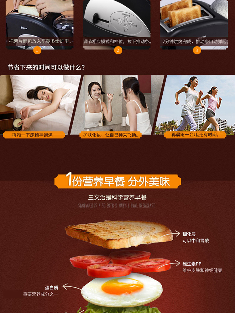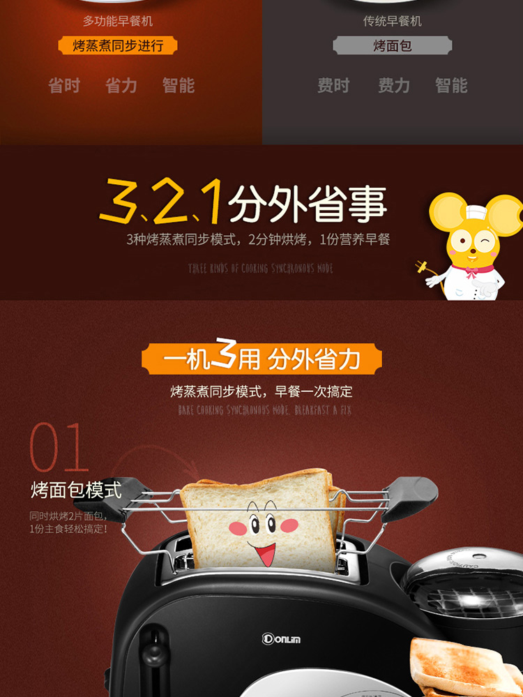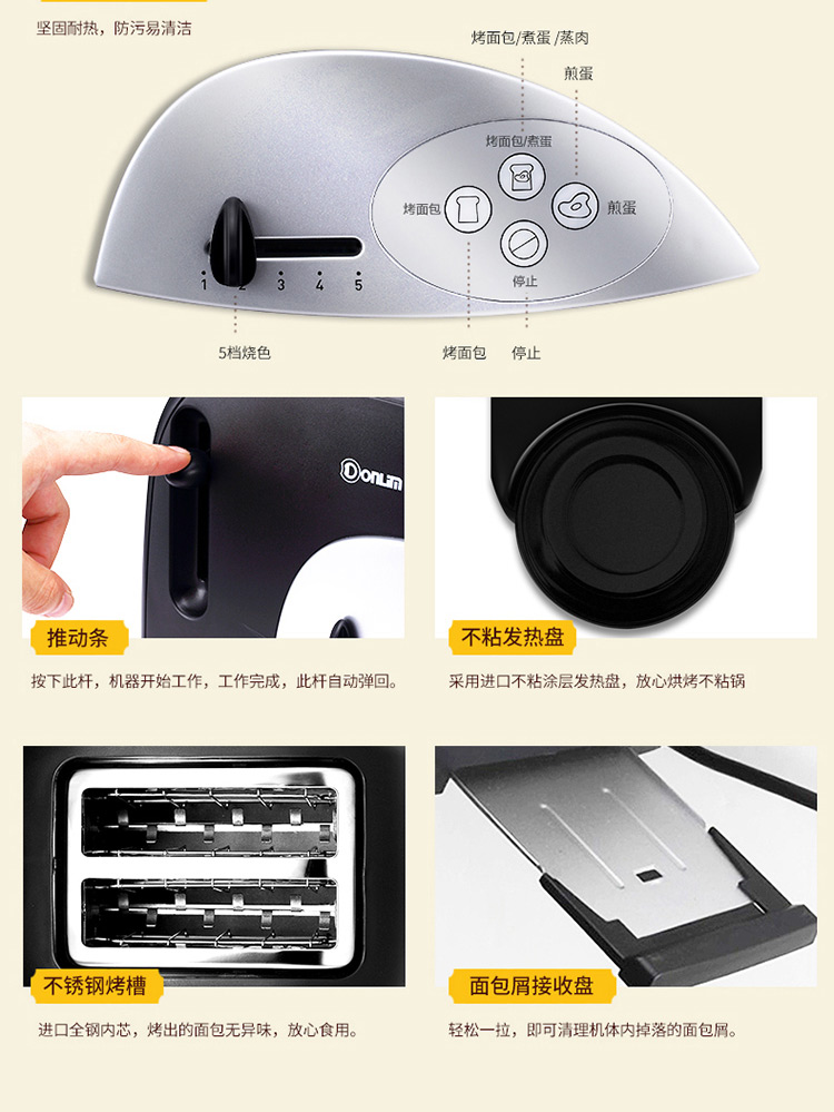 【授权商品】东菱Donlim面包机早餐机烤面包机 家用多士炉全自动多功能早餐机XB-8002