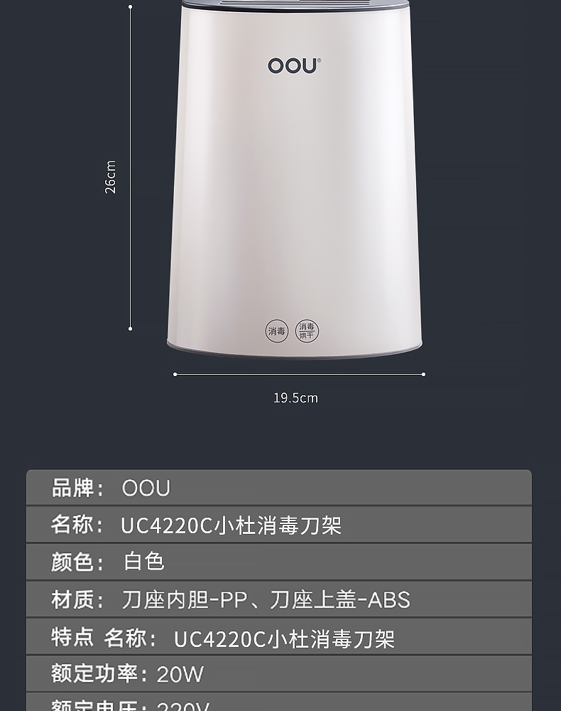 oou小杜智能消毒刀架抗菌-白色 UC4220C