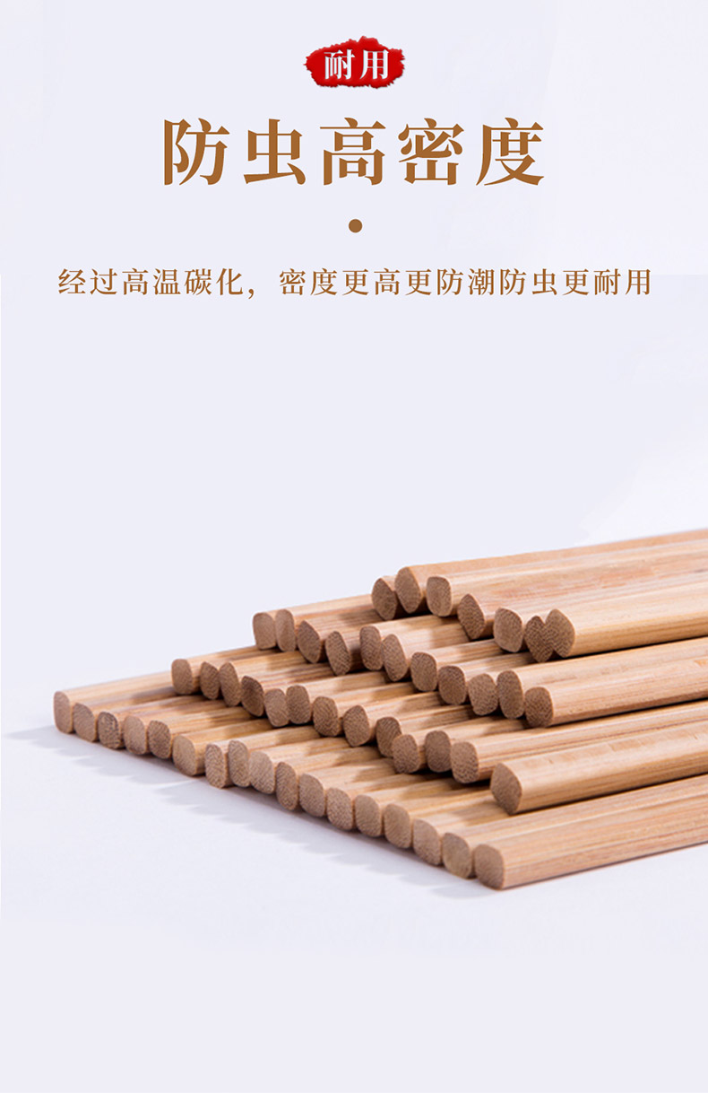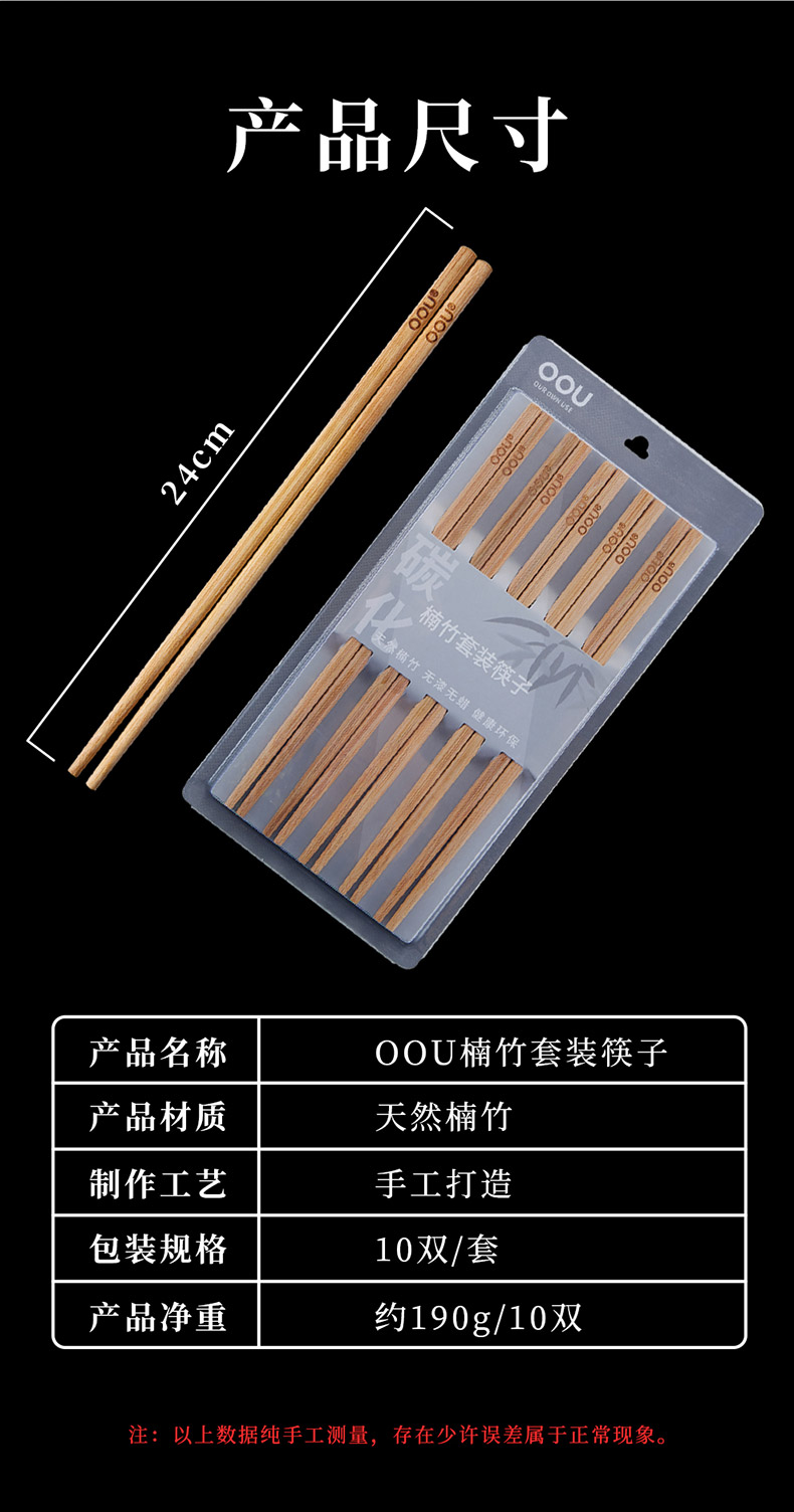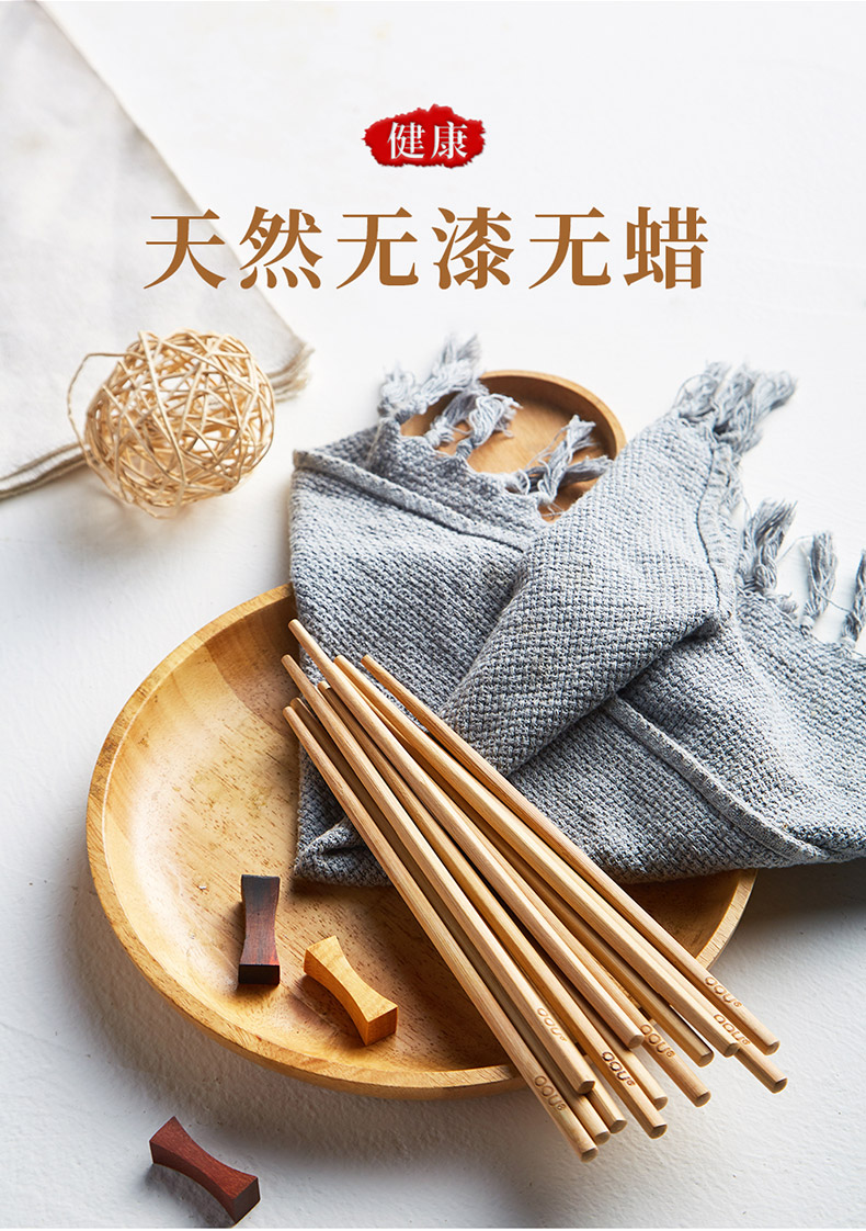 oou楠竹筷子十双装套装无漆无蜡天然木健康安全环保厨房工具