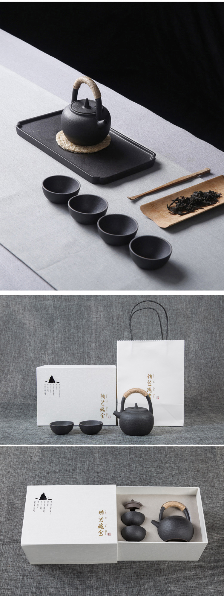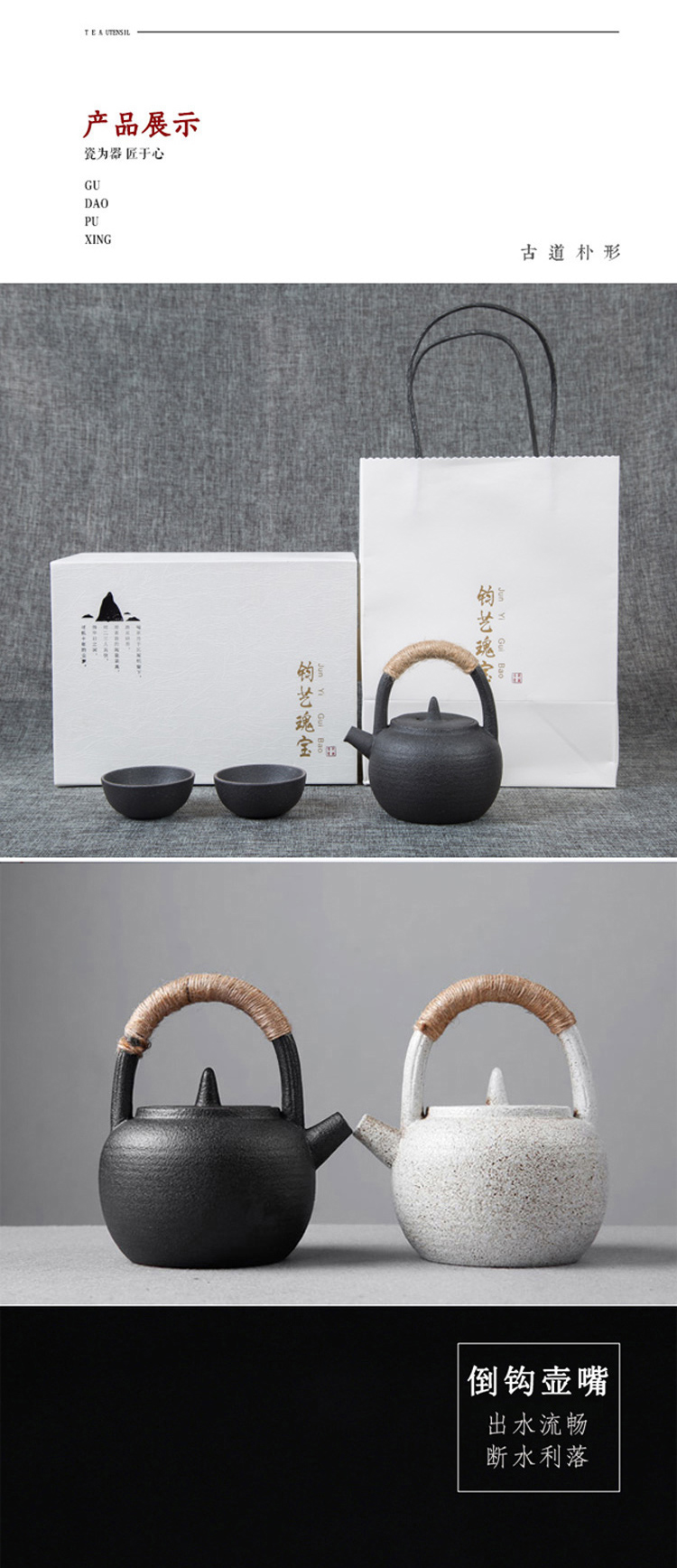 钧艺瑰宝小提梁1壶2杯茶具套装 白色