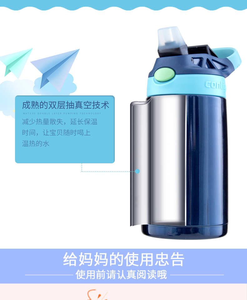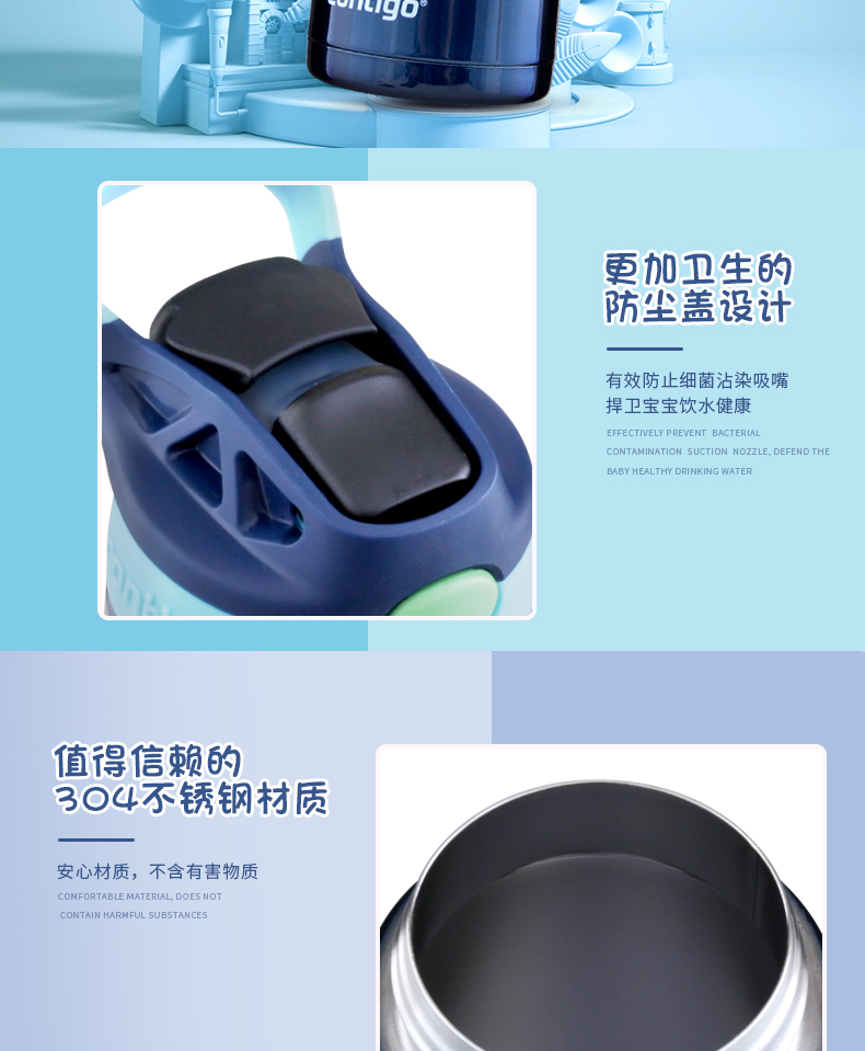 美国Contigo康迪克 小发明家儿童不锈钢吸管保温杯400ML 浅蓝色