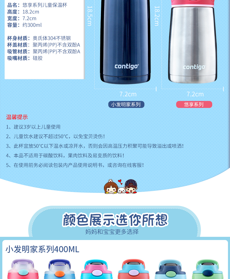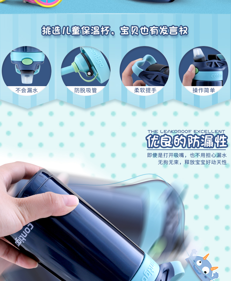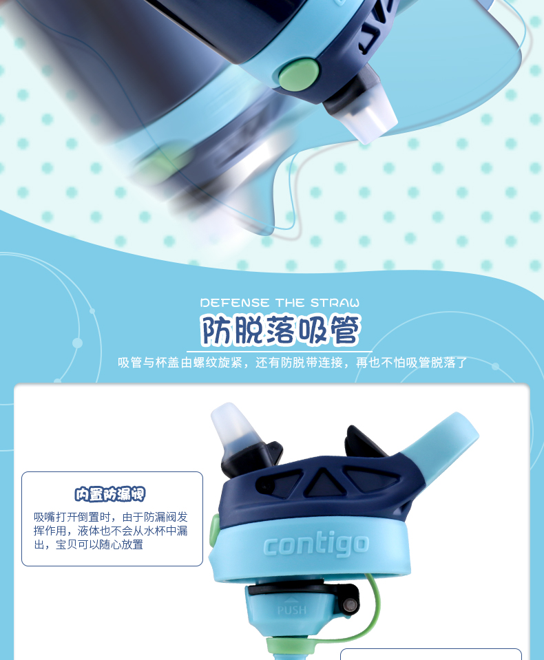您所在的位置:首页 > 家居日用 >  水具酒具 >  保温杯 >  美国Contigo康迪克 小发明家儿童不锈钢吸管保温杯400ML 浅蓝色