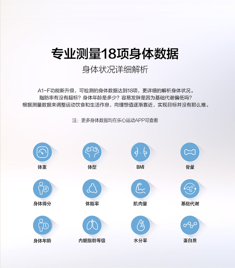 您所在的位置:首页 > 家用电器 >  个护健康 >  电子秤 >  【授权商品】中国乐心体脂称A1-F白色