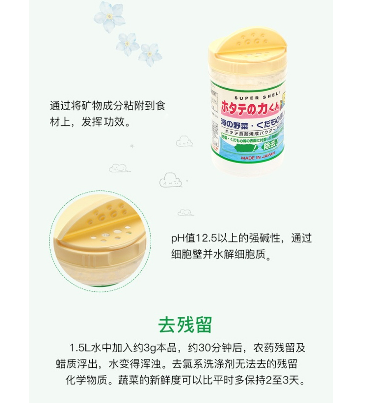【日本直邮】MIRACLE POWER 日本汉方研究所 贝壳粉蔬果清洗剂洗菜粉 90g