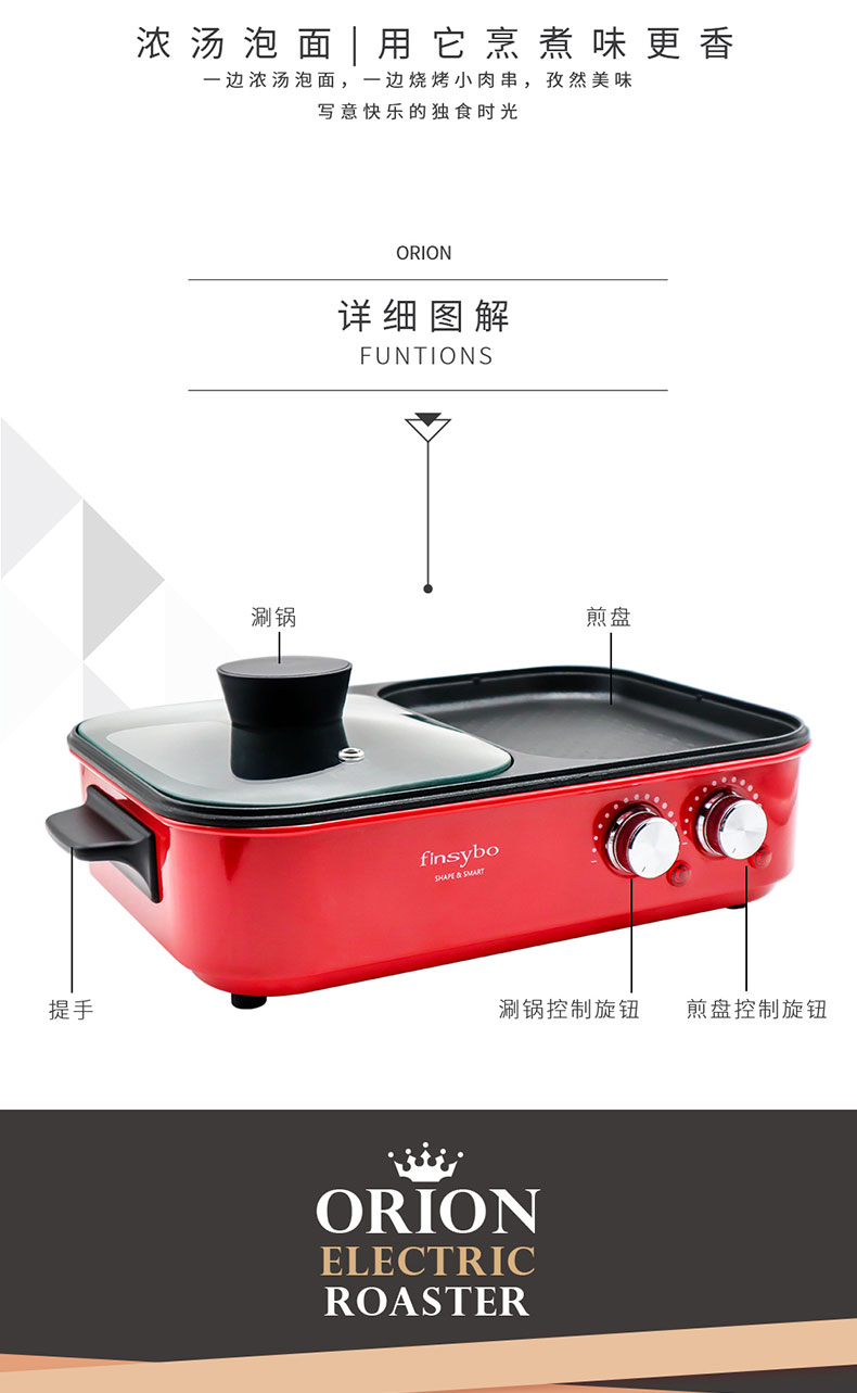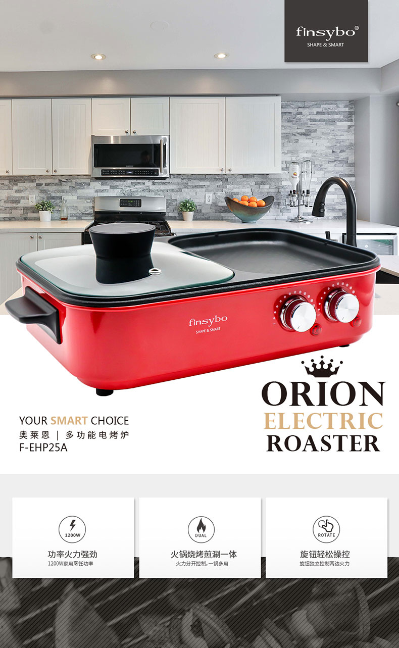 【授权商品】英国finsybo奥莱恩多功能电烤炉 F-EHP25A 1.8L 1200W