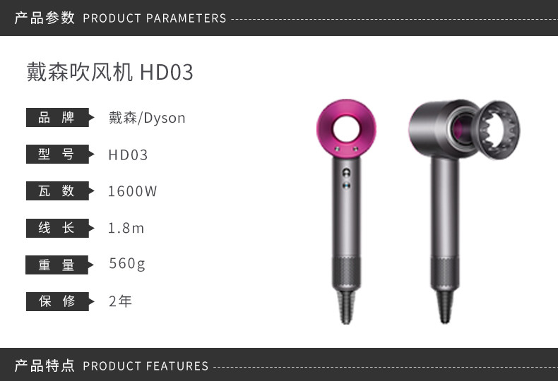 您所在的位置:首页 > 家用电器 >  个护健康 >  电吹风 >  【国行正品联保两年】DYSON/戴森 新款吹风机 Supersonic HD03中国红