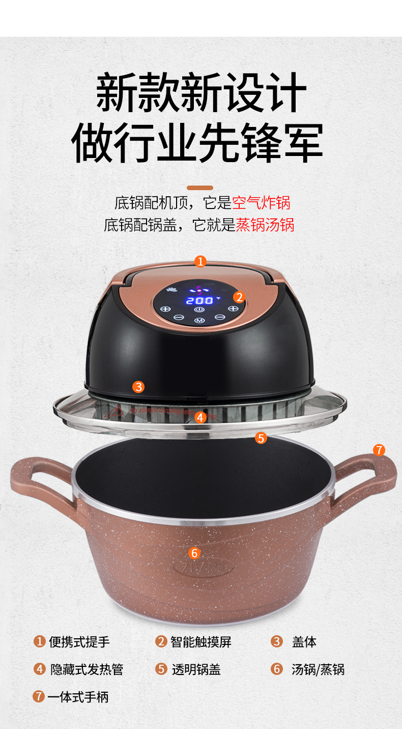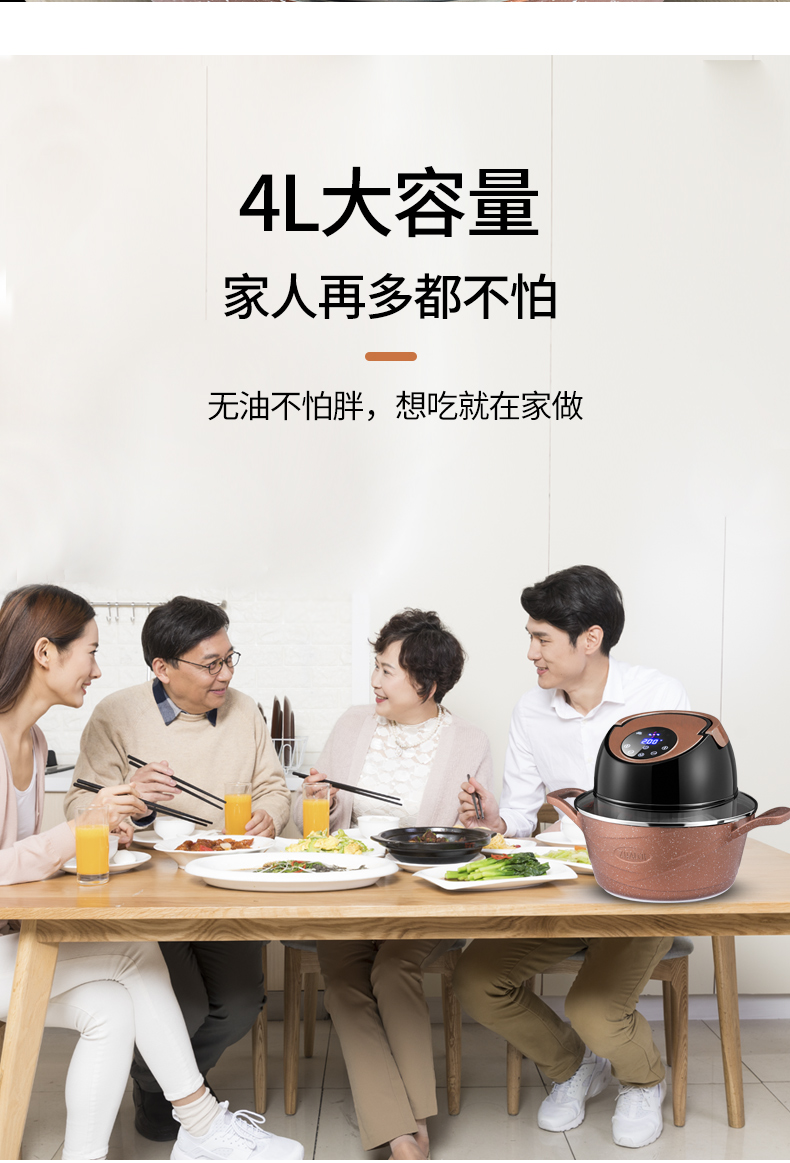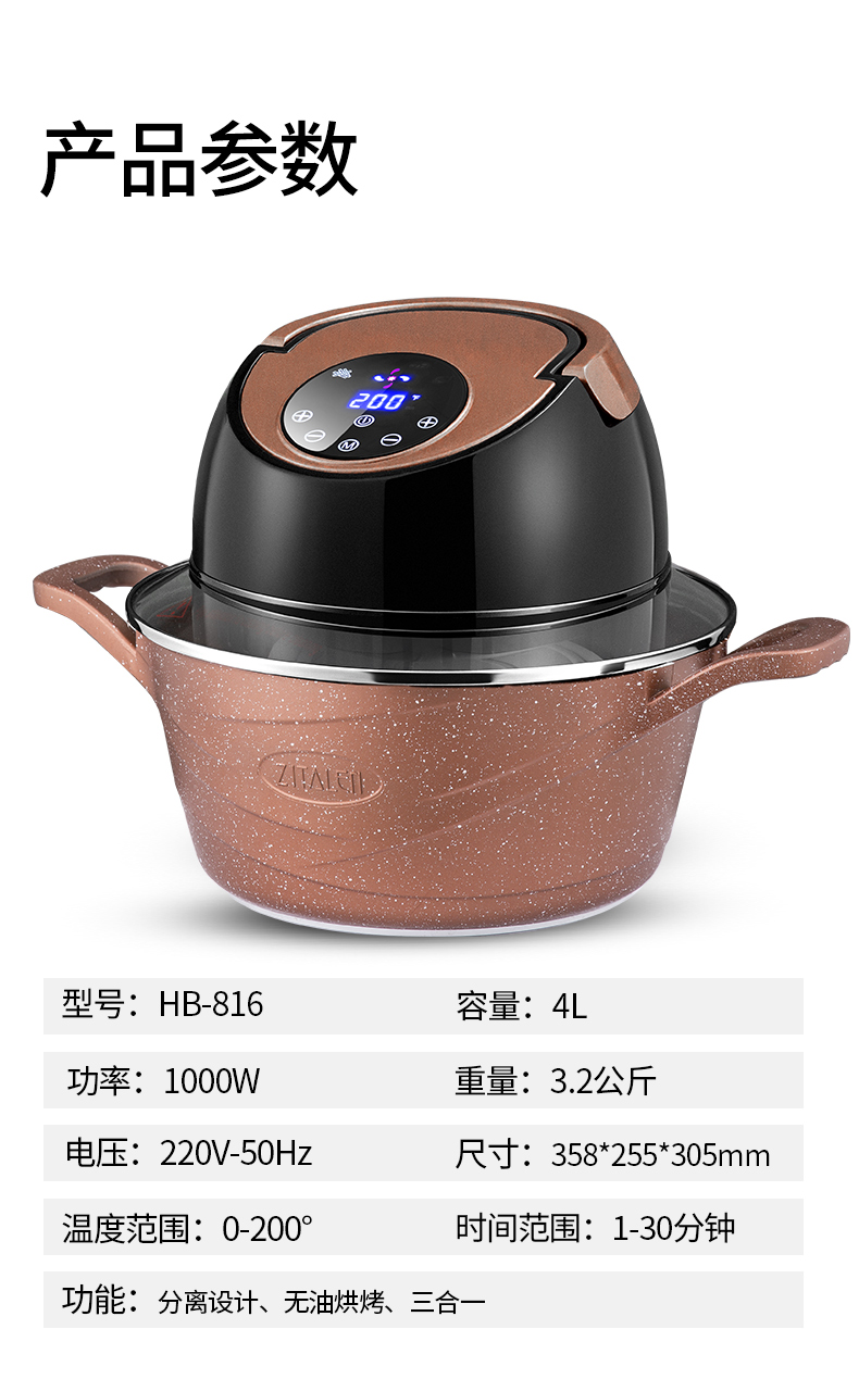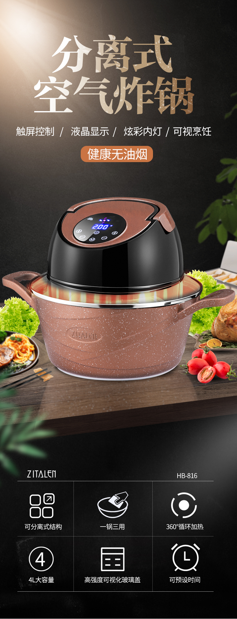 英国ZITALEN空气炸锅可分离机体4L大容量家用全自动无油电炸汤锅
