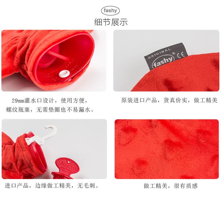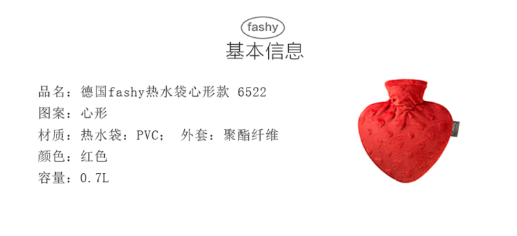 德国fashy热水袋心形款暖手袋 6522 0.7L