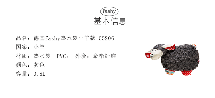 德国fashy热水袋小羊款暖手袋 65206 0.8L、23*31 cm