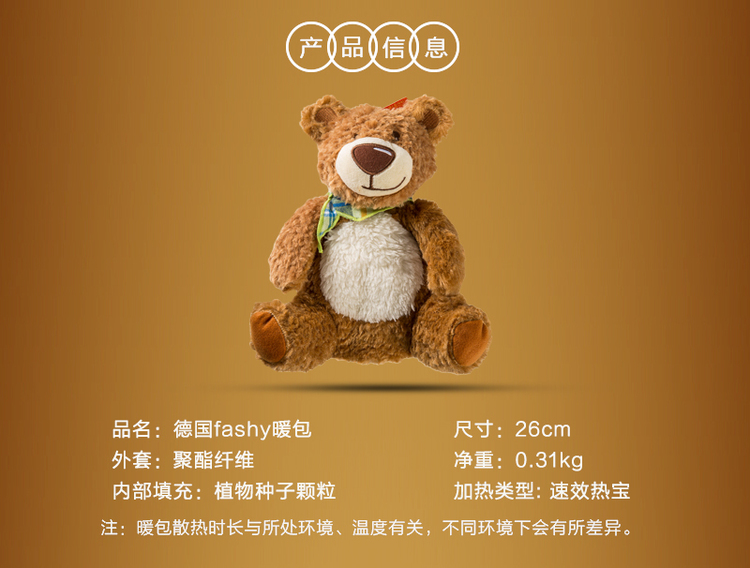 德国fashy暖包小熊款微波炉加热暖包本尼熊6349 26cm