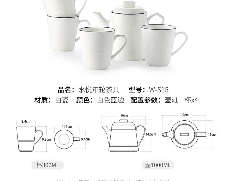 【授权商品】唯都水悦年轮茶具套装W-S15一壶四杯整套茶具陶瓷白瓷茶具饮茶