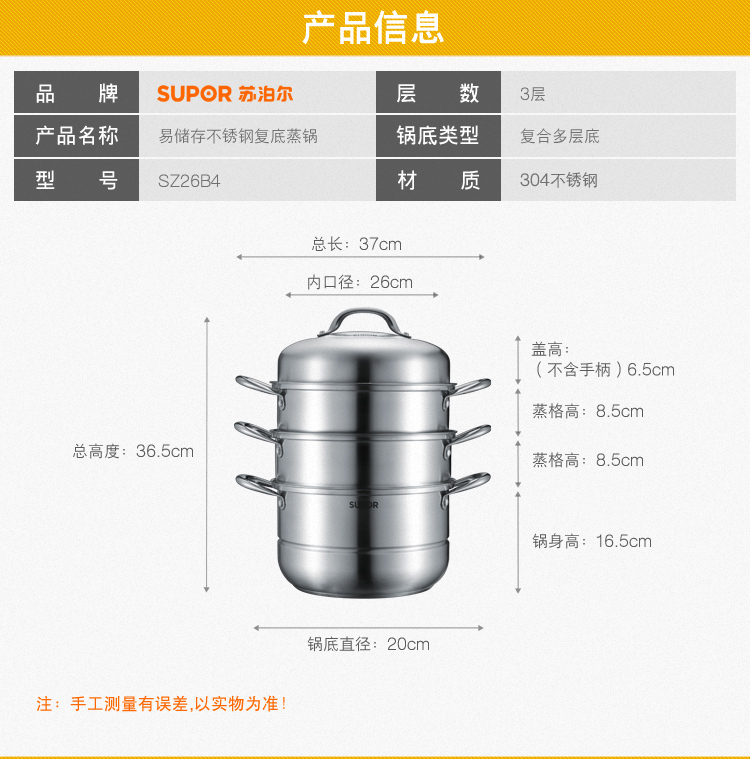 苏泊尔三层SZ26B4蒸锅26CM