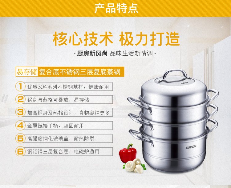 您所在的位置:首页 > 家居日用 >  烹饪锅具 >  蒸锅 >  苏泊尔三层SZ26B4蒸锅26CM