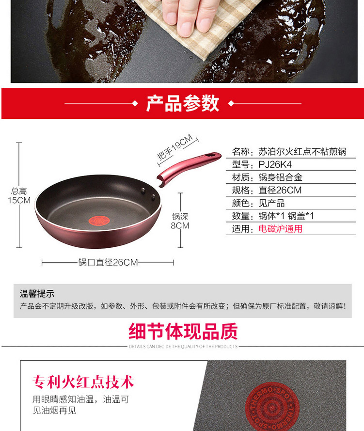 苏泊尔厨具PJ26K4火红点煎锅电磁炉通用