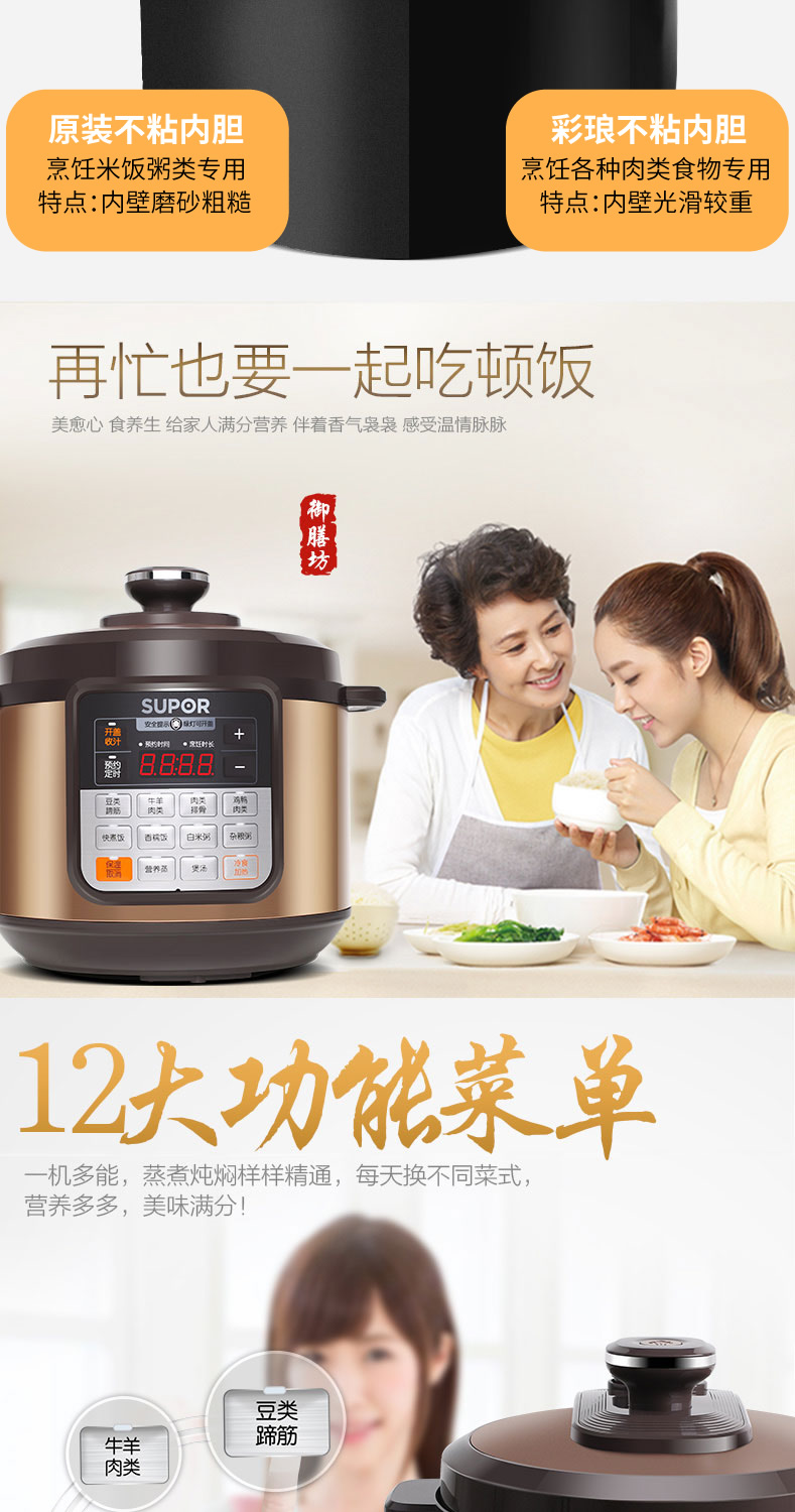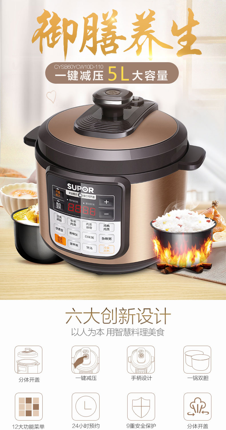 您所在的位置:首页 > 家用电器 >  厨房小电 >  电压力锅 >  苏泊尔家电CYSB50YCW10D电压力锅一锅双胆高压锅5L