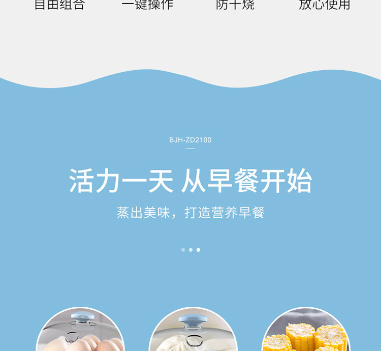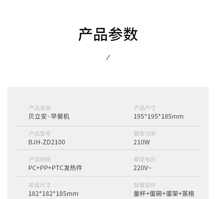 【授权商品】贝立安 BJH-ZD2100 早餐机煮蛋器 蒸包子煮蛋器蓝色