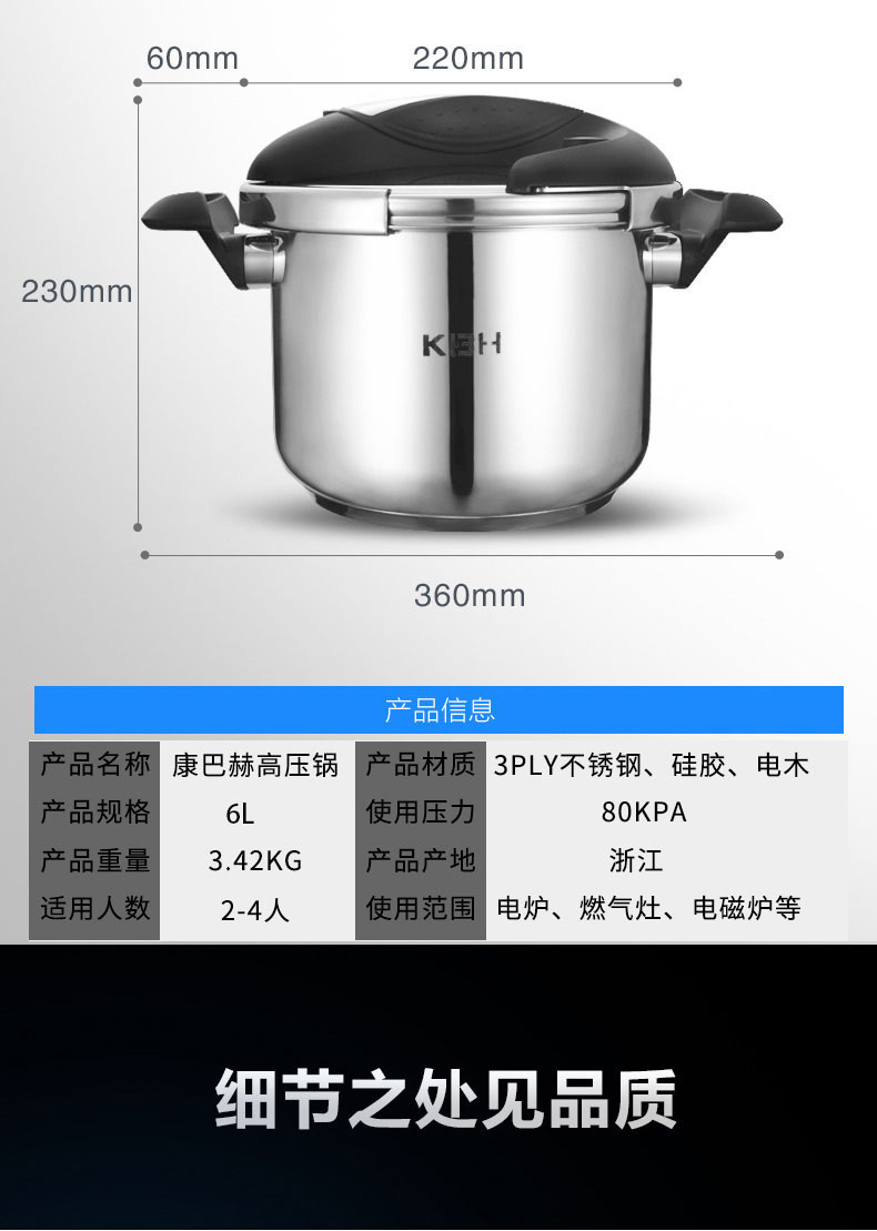 您所在的位置:首页 > 家居日用 >  烹饪锅具 >  高压锅 >  【授权商品】德国康巴赫(KBH)康巴赫 不锈钢压力锅炫脉压力锅磁炉通用 高压锅 压力煲 不锈钢高压锅 22cm 6升 蓝眼