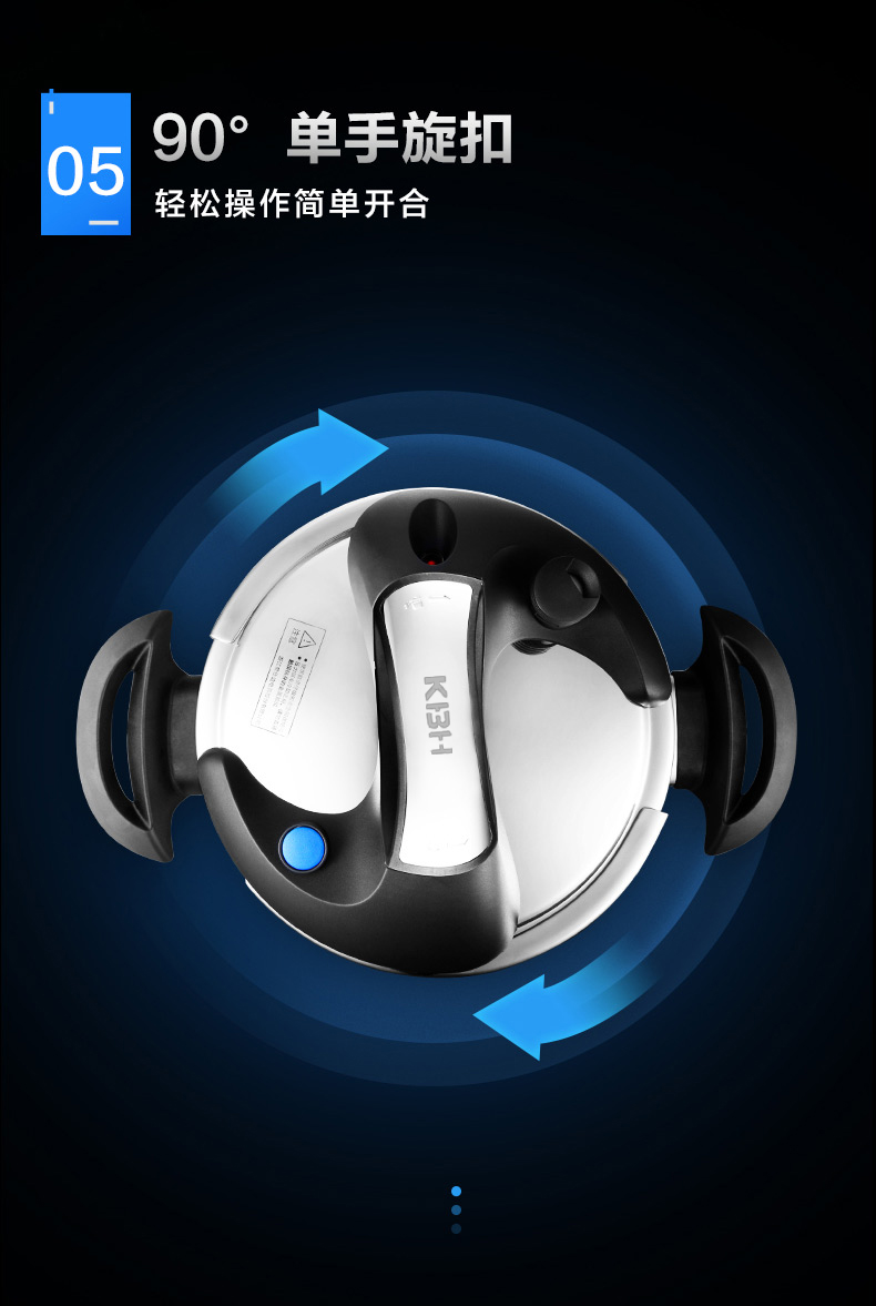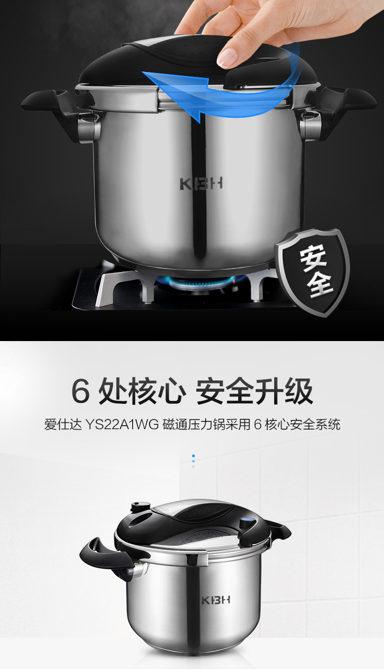 【授权商品】德国康巴赫(KBH)康巴赫 不锈钢压力锅炫脉压力锅磁炉通用 高压锅 压力煲 不锈钢高压锅 22cm 6升 蓝眼