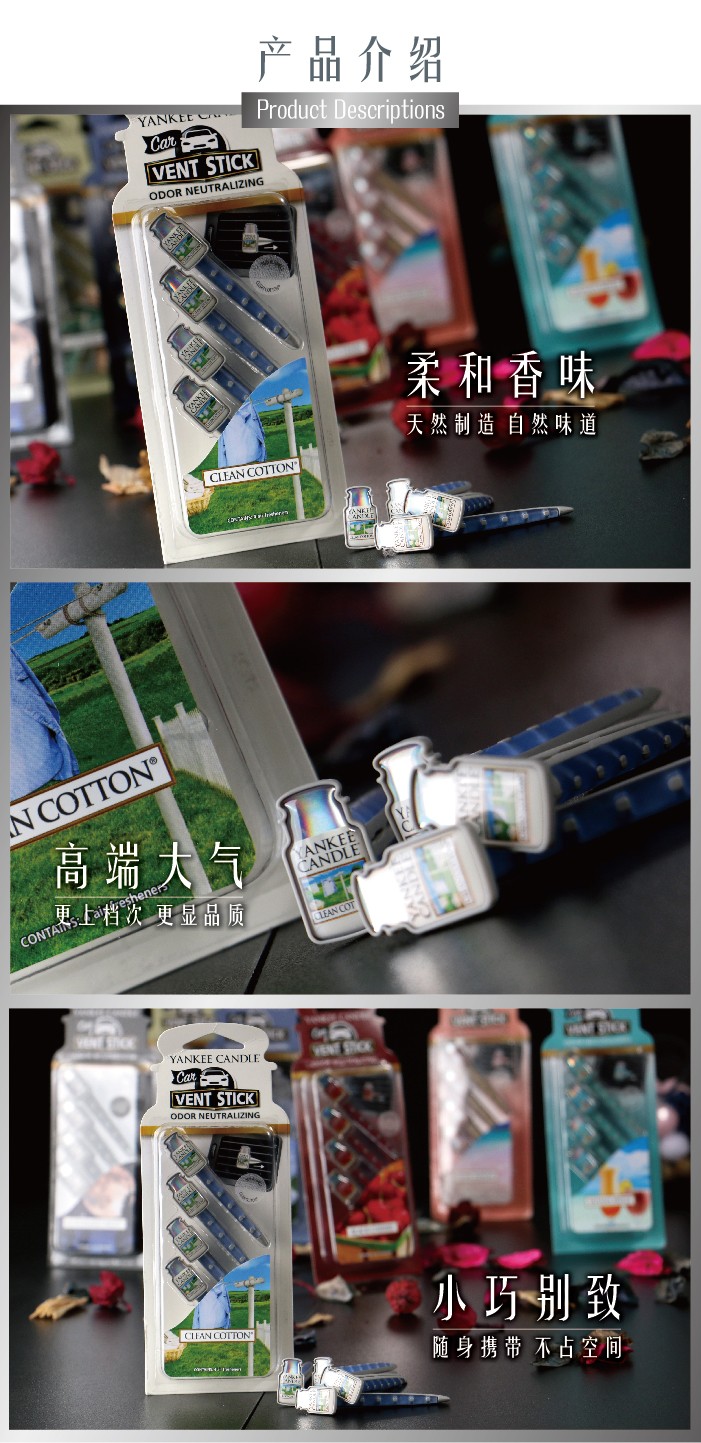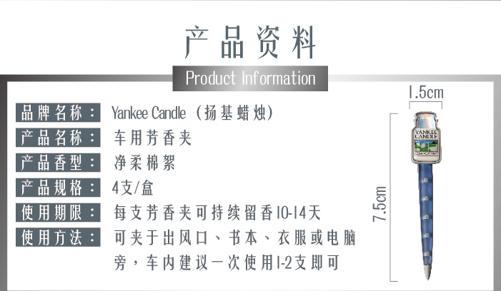 【授权商品】扬基汽车香氛芳香夹(4支装) - 净绵(3g)
