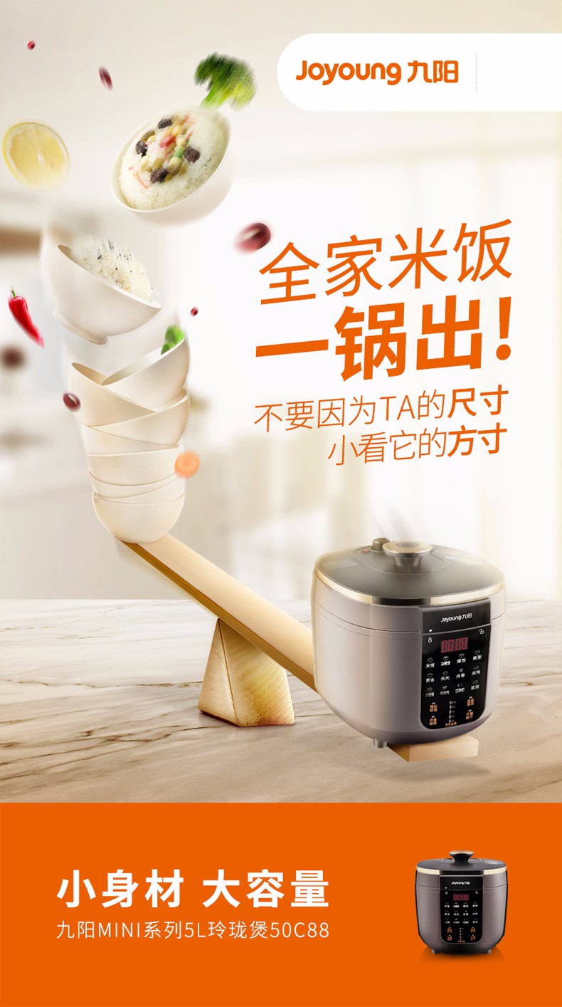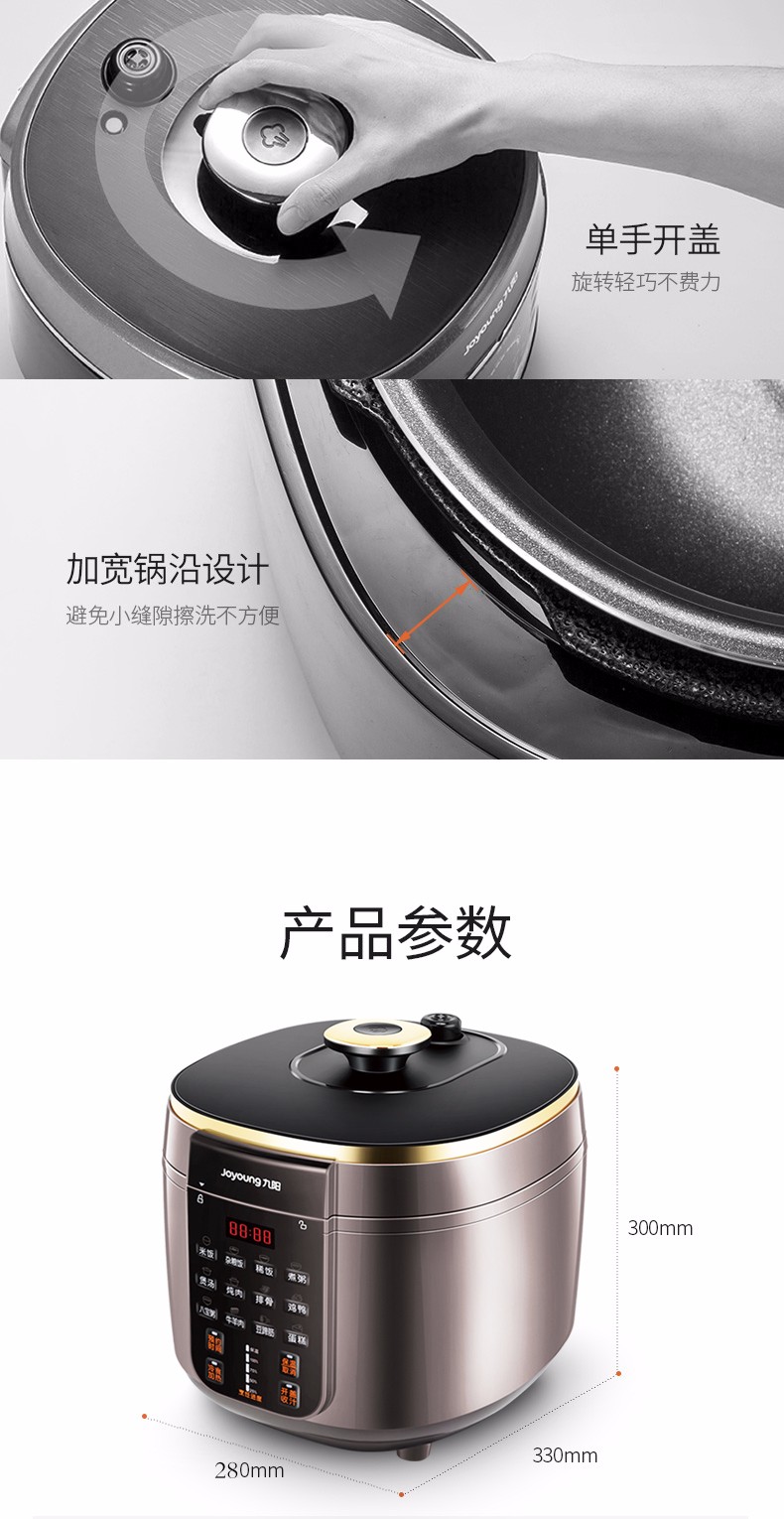 【授权商品】九阳(Joyoung) Y-50C88 土灶铁釜 电压力煲 大屏一键通 璨光金色