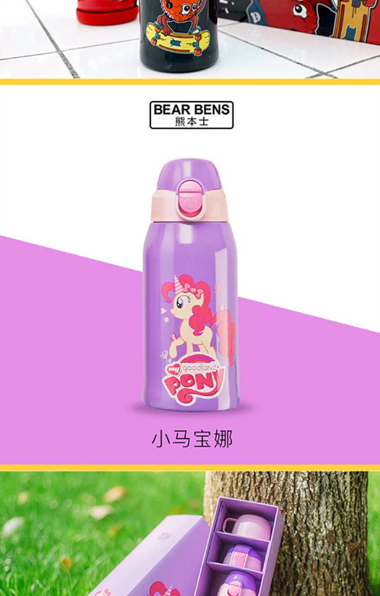 【授权商品】熊本士 316不锈钢3D无缝系列 一杯三盖 (吸管盖和小碗盖+直饮盖) 小马宝莉 620ML