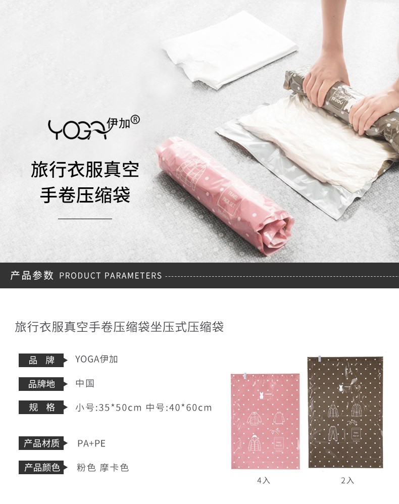 YOGA/伊加 衣物真空手卷压缩袋旅行收纳袋粉色小号 4枚入