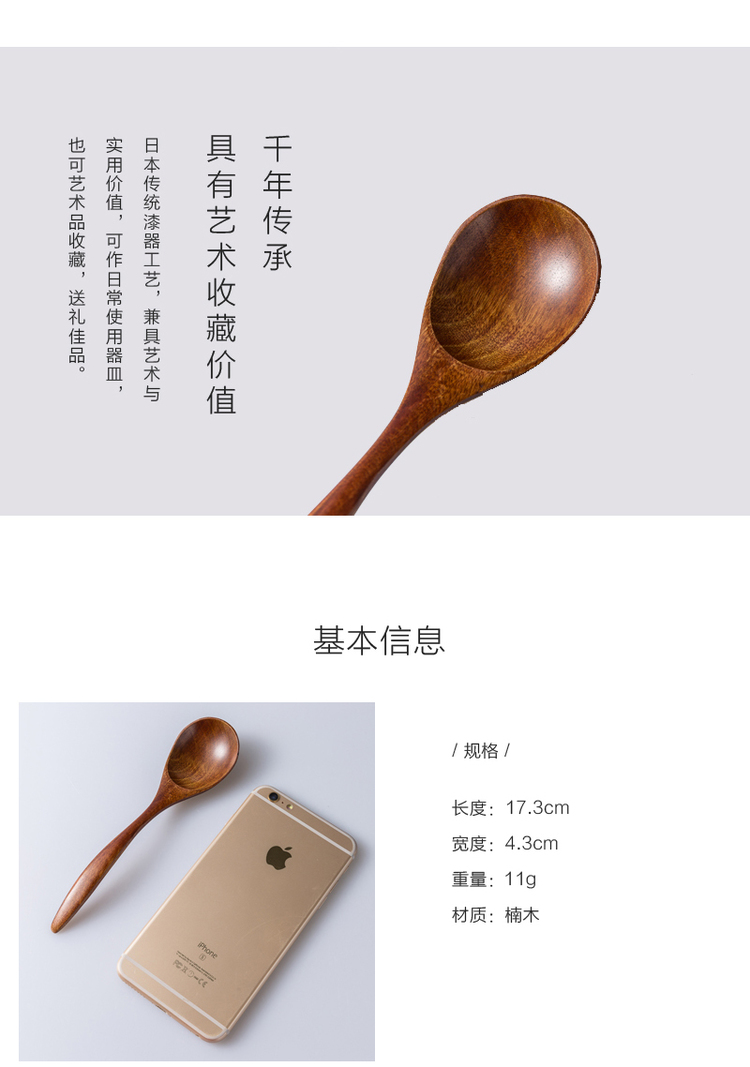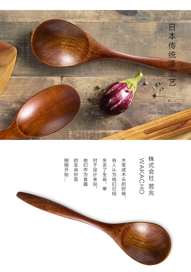 日本原产wakacho若兆 木制漆器楠木汤勺餐勺