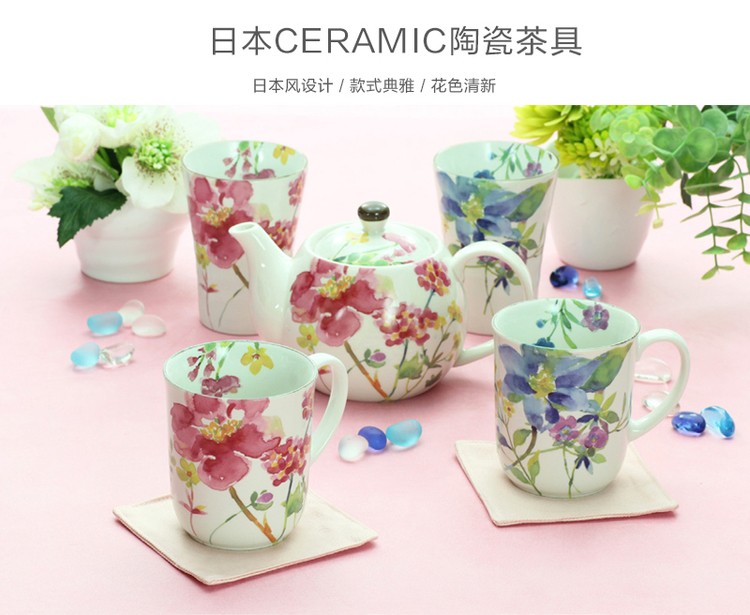 日本原产ceramic 蓝 手工陶瓷茶杯水杯 花工房5个装