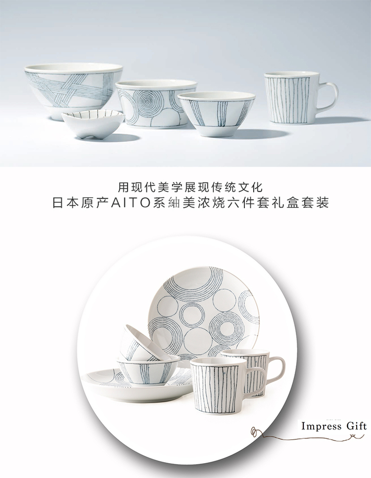 日本原产AITO系紬美浓烧陶瓷六件套礼盒套装