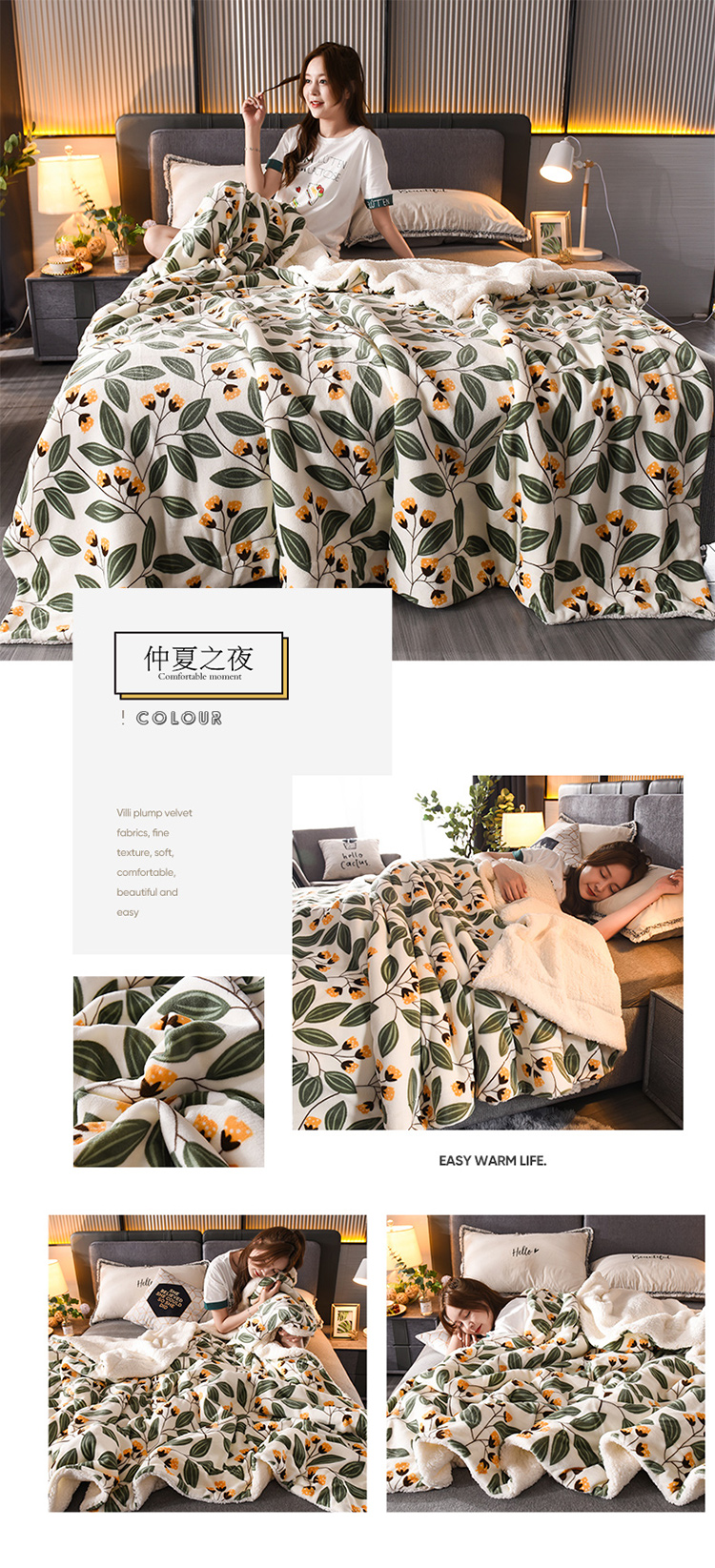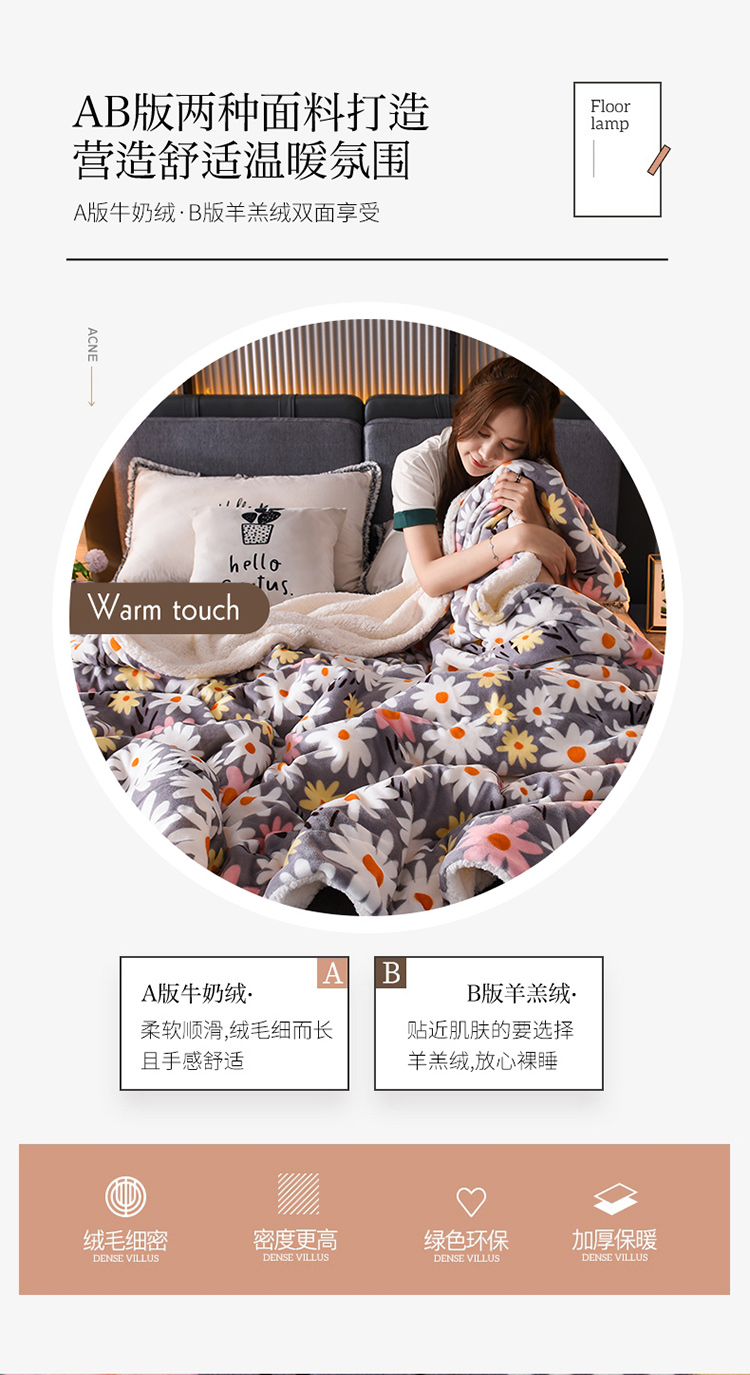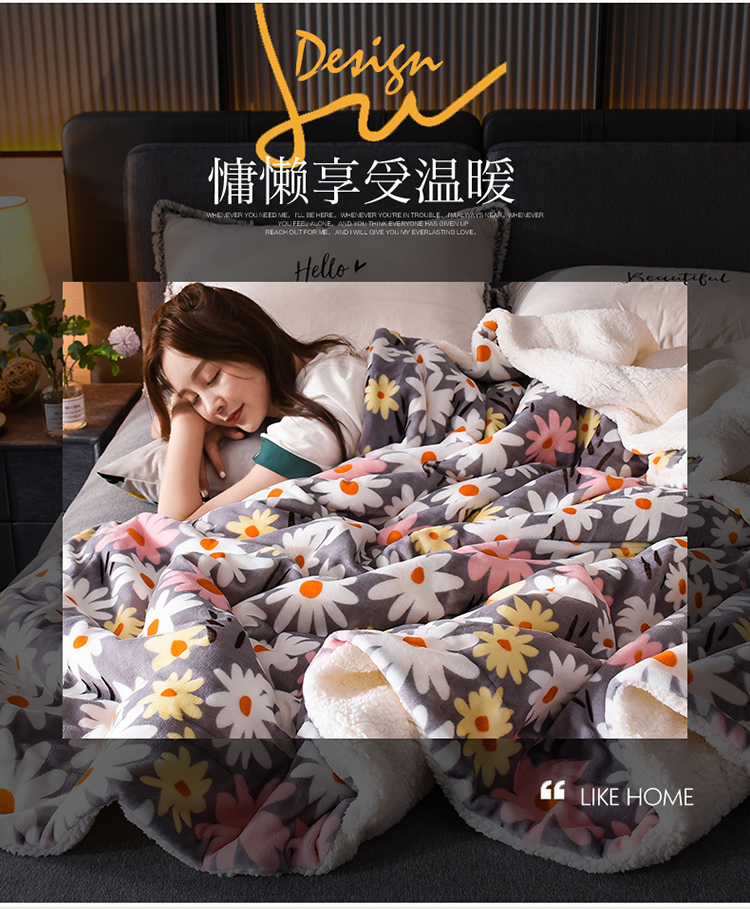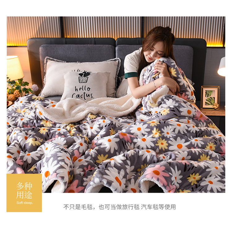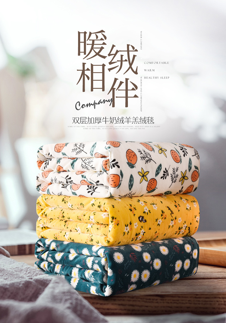 遇洁轩双层加厚A牛奶绒B羊羔绒毛毯200x230cm(下单备注图案)
